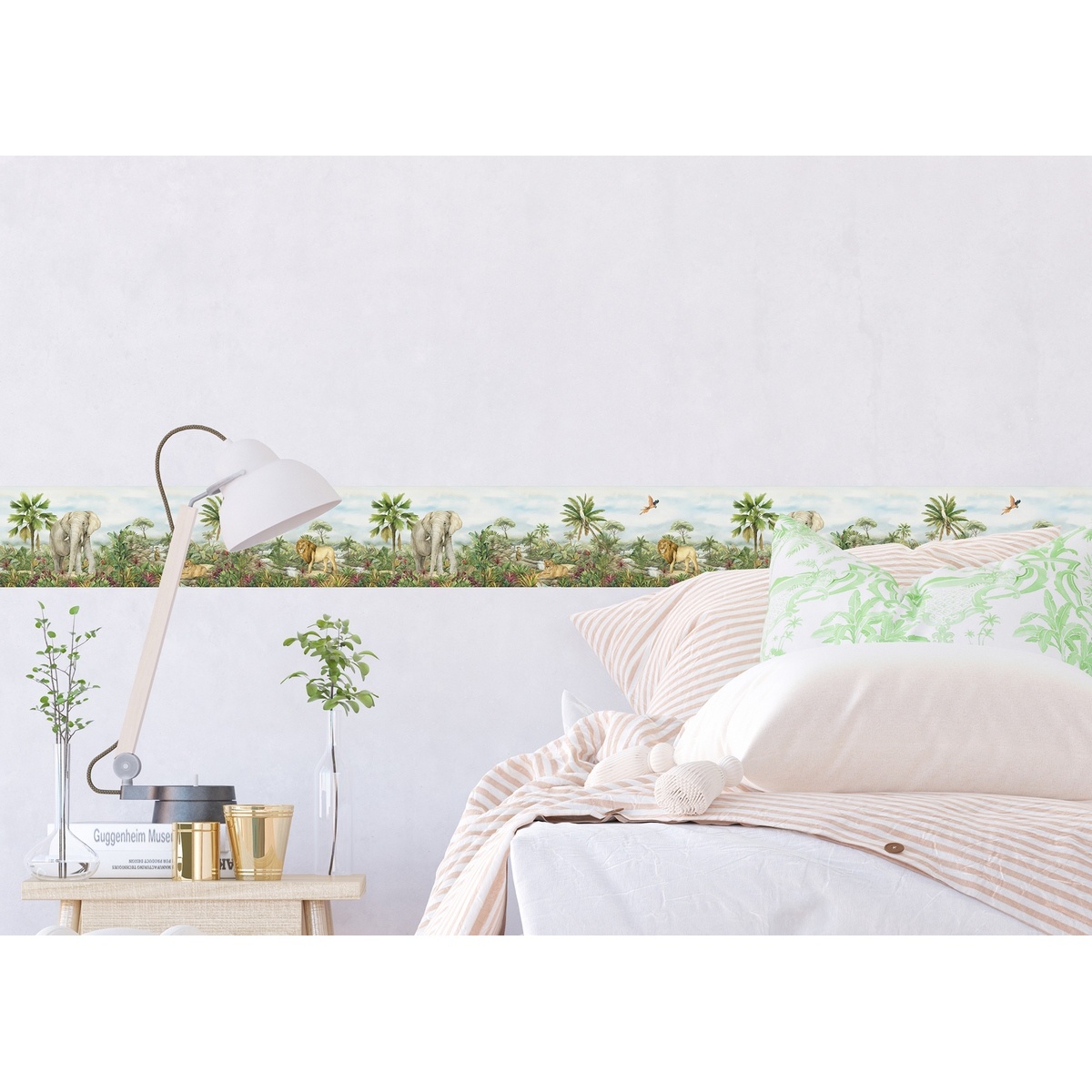 Krásna bordúra sa bude skvele vynímať v izbe všetkých dievčat a chlapcov. Každé dieťa bude mať radosť, ak mu ozdobíte izbičku bordúrou s obrázkami džungle. Môžete ju použiť samostatne alebo v kombinácii s fototapetami či dekoráciami.
