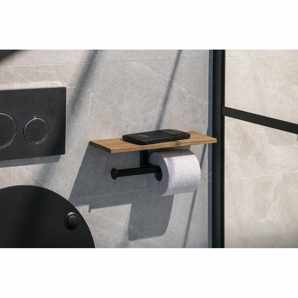 SAPHO Ska425 Ska dvojitý držiak toaletného papiera s poličkou 30 x 8 x 10 cm, čierna mat/dub