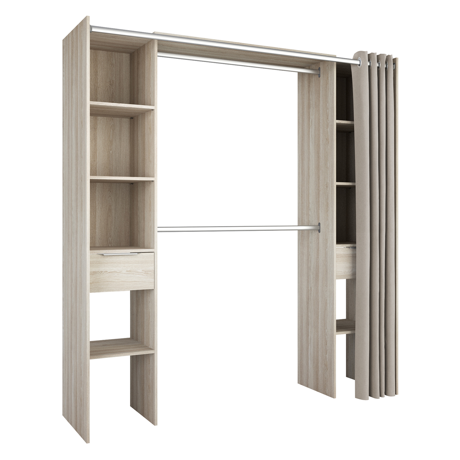 Farebné prevedenie je dub Shannon s béžovým závesom. Tento organizér obsahuje 2 zásuvky s kovovými pojazdmi, 6 políc a 2 šatníkové tyče. Je možné ho zostaviť v rôznych šírkach od 115 do 190 cm, maximálne nosnosti sú uvedené v návode na montáž.