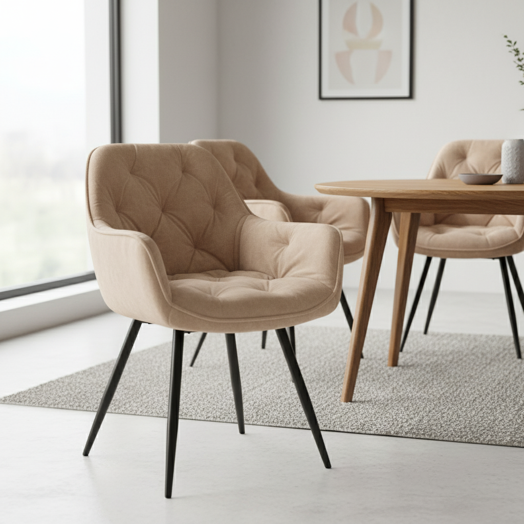 Dokonalá jedálenská stolička CHERRY VELVET vyčarí kúsok elegancie vo vašej jedálni alebo pracovni. Vďaka prešívanému operadle a rúčkam budete mať zaručené dokonalé sedenie a relax. Nohy stoličky sú kovové v dokonalej čiernej farbe. Výborne sa hodí do každého moderného interiéru. Max. nosnosť stoličky je 120 kg.