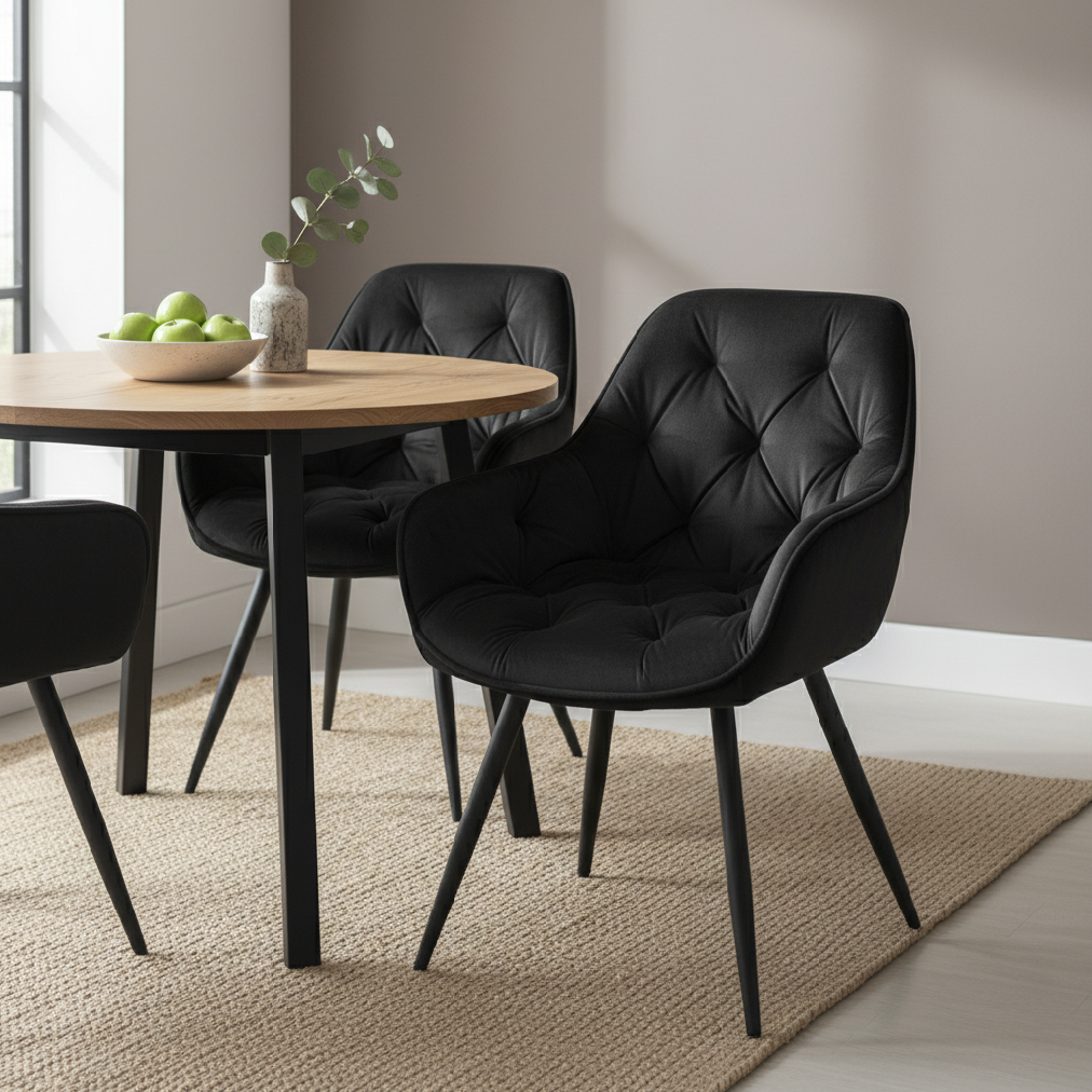 Skvelá jedálenská stolička CHERRY VELVET vyčarí kúsok elegancie vo vašej jedálni alebo pracovni. Vďaka prešívanému operadle a rúčkam budete mať zaručené dokonalé sedenie a relax. Nohy stoličky sú kovové vo skvelej čiernej farbe. Výborne sa hodí do každého moderného interiéru. Max. nosnosť stoličky je 120 kg.