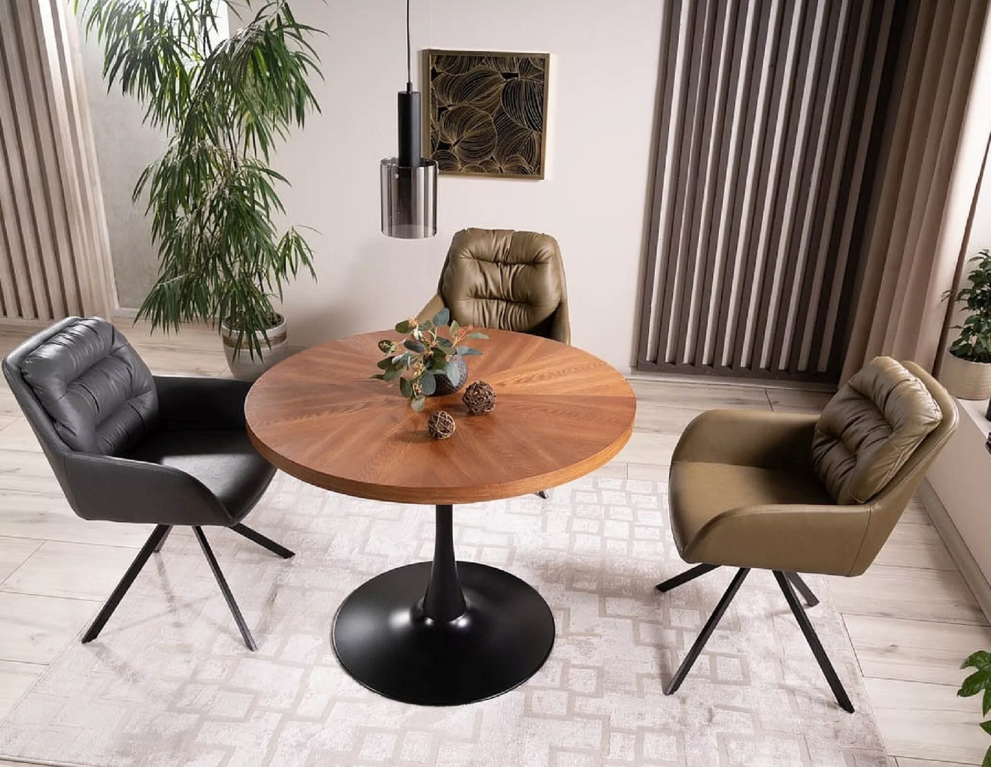 Moderný jedálenský stôl AMADEO je veľmi vkusný a praktický kúsok, ktorý zapadne do každej jedálne, alebo kuchyne. Konštrukčné riešenie je nielen praktické, ale aj zaujímavé. Originalitu zastupuje čierna kovová nožičky, ktorá zaručuje aj dobrú stabilitu stola.