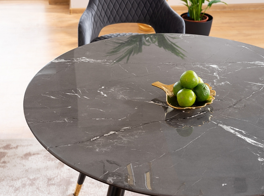 Jedálenský stôl CYRYL II, je dokonalý stôl, ktorý predstavuje nielen nadčasový dizajn, ale aj moderné línie a unikátny vzhľad. Charakteristickým znakom stolíka je zaujímavé prevedenie nožičiek a vrchná časť s efektom kameňa, vyrobená z tvrdeného skla. Nadčasový jedálenský stôl CYRYL II, ponúka nielen elegantný dizajn, ale aj jedinečný vzhľad a unikátne línie. Nábytok je dodávaný v demonte.