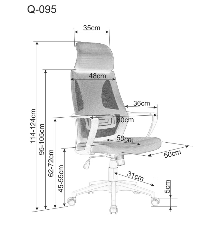Kancelárske kreslo Q095 je ako stvorené pre každú modernú pracovňu, kanceláriu či študentskú izbu. Kancelárske kreslo Q095 je vyrobené z kvalitnej látky v kombinácii so sieťkou. Kancelárske kreslo má mechanizmus TITL, ktorý umožňuje nastaviť výšku sedenia, opierka hlavy a podrúčky sú pevné. Maximálna nosnosť je 120 kg.
