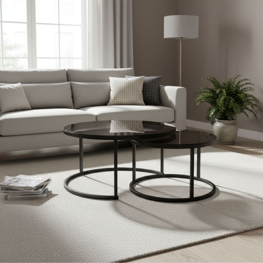 HOMCOM Sada 2 konferenčných stolíkov s čiernym oceľovým rámom