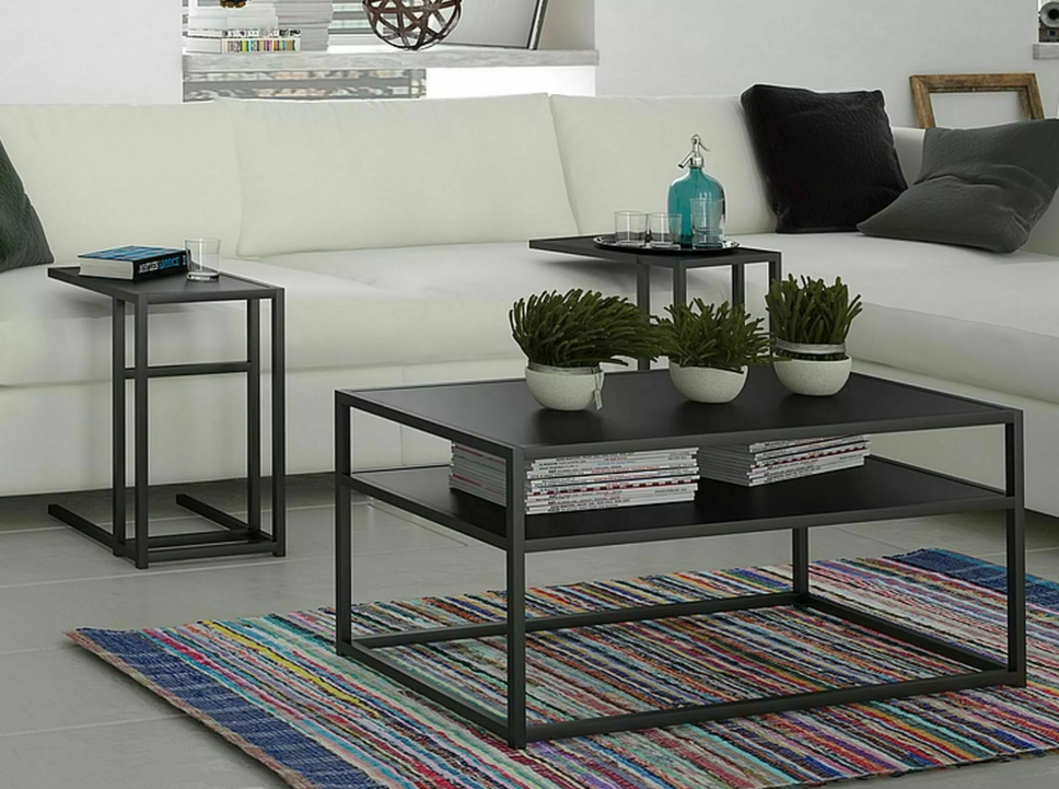 HOMCOM Sada 2 konferenčných stolíkov s čiernym oceľovým rámom