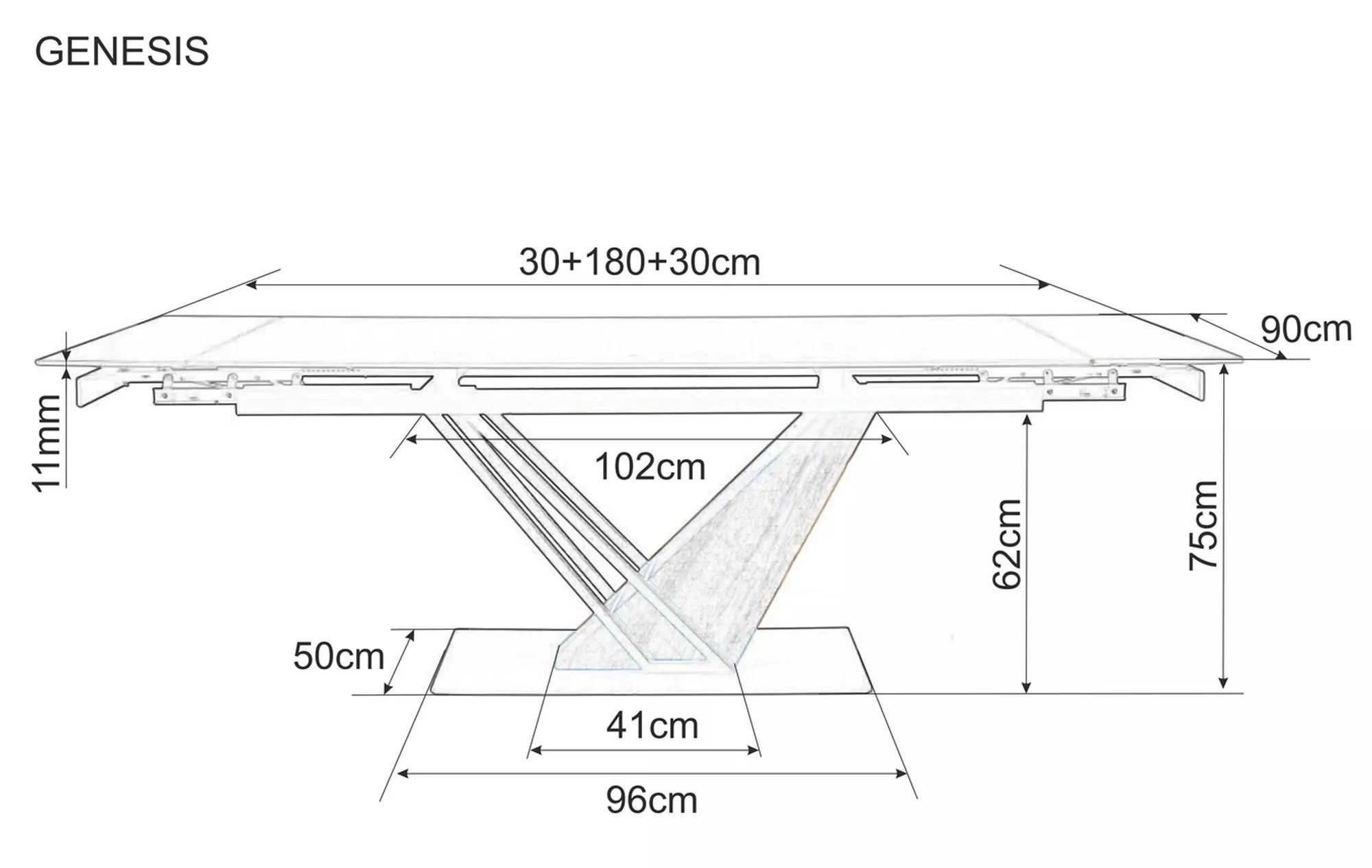 Kvalitný rozkladací jedálenský stôl GENESIS je vyrobený z dýhy a MDF v kombinácii s kovom. Doska je keramická. Stôl je kvalitný, materiál nevyžaduje špeciálnu starostlivosť, nečistoty stačí utrieť vlhkou handričkou.