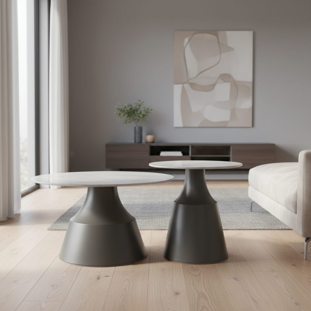 Zaujímavá a moderná sada dvoch konferenčných stolíkov ITAKA v peknom prevedení a dizajne sú tou správnou voľbou pre všetky domácnosti, ktoré uprednostňujú štýlové a praktické kúsky. Konferenčné stolíky ITAKA sú vyrobené z kovu v kombinácii s keramikou. Stolíky sú vo farebnom prevedení biely lesk s kombináciou sivá matná.