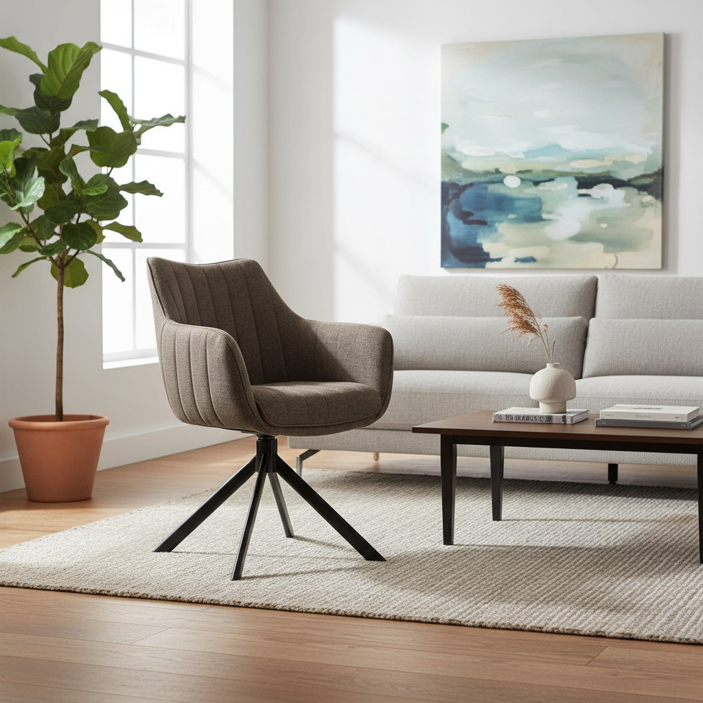 Stolička stojí na kovových nožičkách, ktoré zaručujú nielen pevnosť a stabilitu stoličky, ale dodávajú aj možnosť otáčania stoličky až o 180°. Látka BREGO je luxusná poťahová látka, ktorá je príjemná na dotyk a mäkká. Látka je odolná voči oderu a žmolkovaniu.