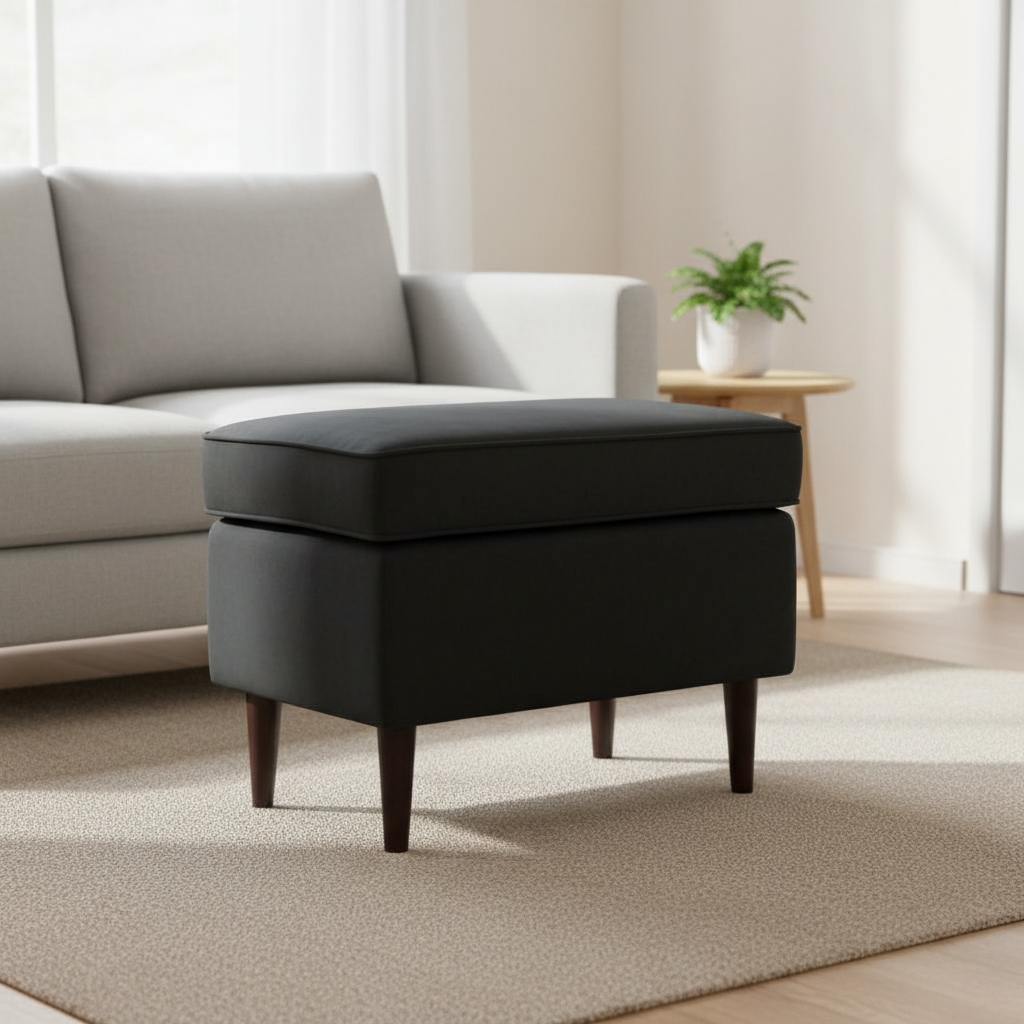 Taburetka RON VELVET | čierna, je vyrobená v modernom dizajne a neodolateľnom vzhľade. Vďaka elegantnému nádychu je taburetka RON VELVET vhodná do každej modernej domácnosti. Moderný vzhľad, nadčasovosť, elegancia a kvalitné drevené nožičky, to všetko získate vďaka výnimočnej taburetke RON VELVET | čierna. Taburetka nie je otváracia a neponúka žiadny úložný priestor.