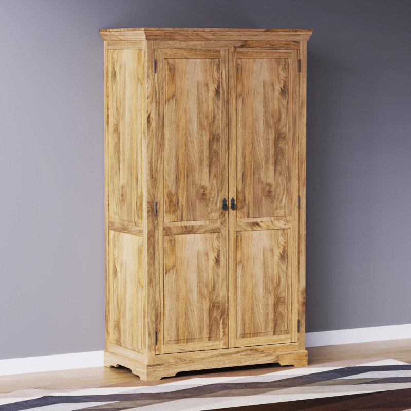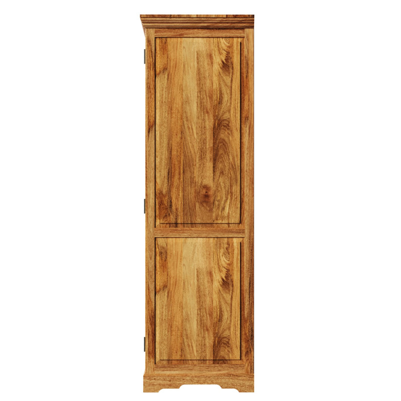 Skriňa z masívu Guru je vyrobená z kvalitného mangového dreva.Skriňa má jednou policu a v hornej časti šatníkovú tič na vešiaky. je vyrobená z masívu mango. Skrine z masívu, ktoré máme skladom, si môžete pozrieť v našom showroome. Indický koloniálny nábytok mango masív.