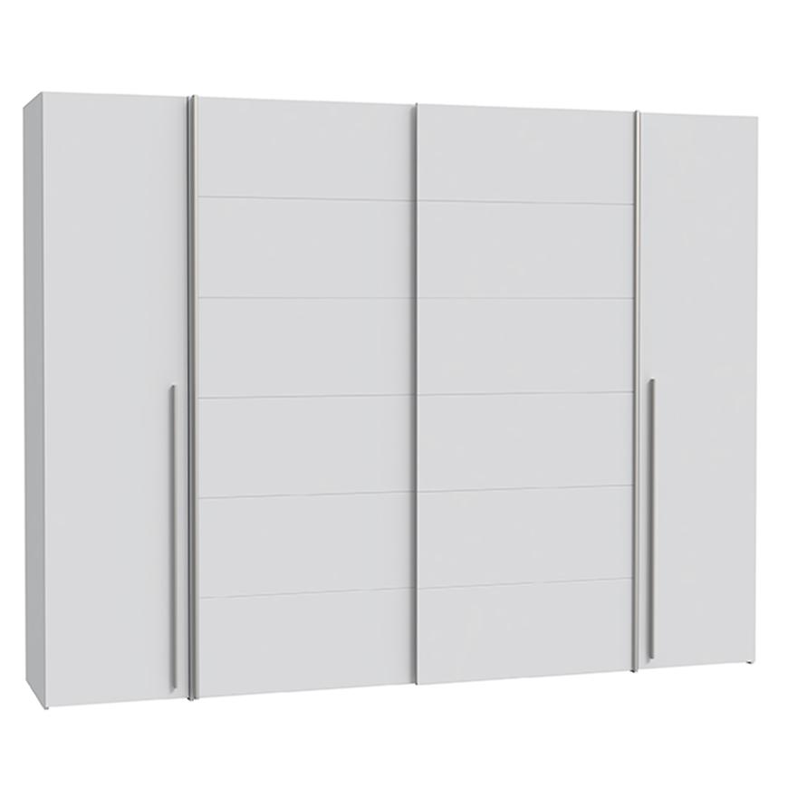 Šatníková skriňa Winterbelle je vyrobená z laminovanej drevotriesky. Odolná a pevná doska vytvára kus nábytku, ktorý bude slúžiť všetkým členom domácnosti dlhé roky. Biela matná farba dosky umožní, aby nábytok dobre zapadol do moderných aranžmánov a jednoduchá, no elegantná forma poteší každého znalca krásneho zariadenia. Skriňa využíva krídlové aj posuvné dvere. Krídlové dvere sú umiestnené vpravo a vľavo a do centrálnej časti skrine sa dostanete praktickými posuvnými dverami.