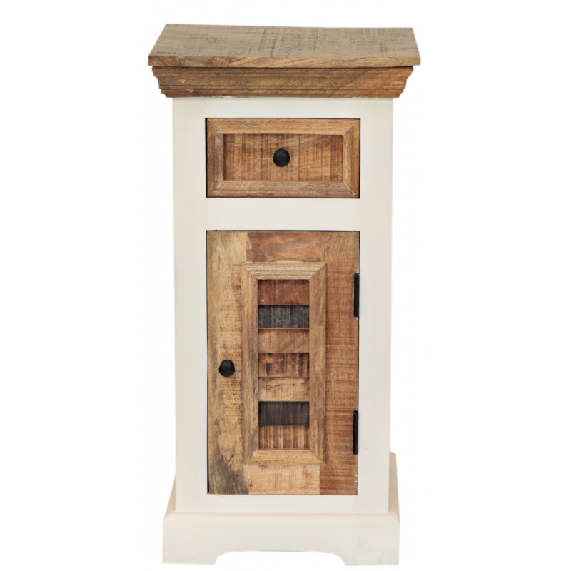 Skrinka do kúpeľne z masívu Agni je vyrobená z kvalitného masívneho mangového dreva vo vidieckom štýle.Skrinka do kúpeľne z jednou zásuvkou a dvierkami s úložným priestorom. Vyrobená z imasívu mango. Skrinky do kúpeľne z masívu, ktoré máme skladom, si môžete pozrieť v našom showroome. Indický koloniálny nábytok mango masív.