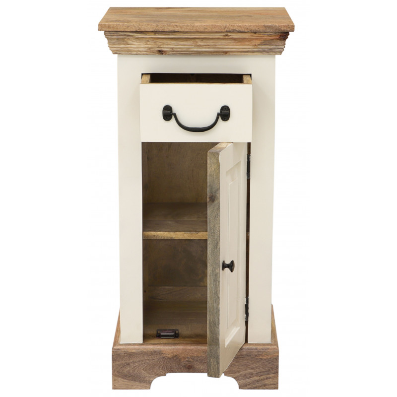 Skrinka do kúpeľne z masívu Retro je vyrobená z kvalitného masívneho mangového dreva vo vidieckom štýle.Skrinka do kúpeľne z jednou zásuvkou a dvierkami s úložným priestorom. Vyrobená z imasívu mango. Skrinky do kúpeľne z masívu, ktoré máme skladom, si môžete pozrieť v našom showroome. Indický koloniálny nábytok mango masív.