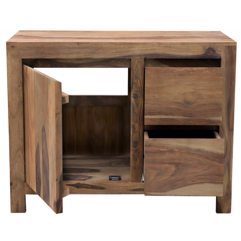 Skrinka pod umývadlo masív Gani je vyrobená z kvalitného masívneho palisandrového dreva.Skrinka pod umývadlo z masívu má jednu zásuvku a dvierka s úložným priestorom. Vyrobená z inického palisandru. Skrinky do kúpeľne z masívu ktoré máme na skladom, si možete pozrieť v našom showroome. Indický koloniálny nábytok palisander (sheesham) masív.