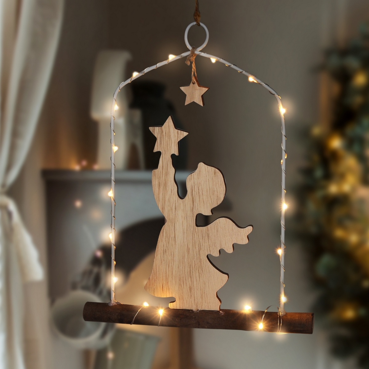 Závesná vianočná dekorácia s motívom anjelika držiaceho hviezdu bude peknou svetelnou dekoráciou do vášho domova. Príjemne zútulní interiér a navodí kúzelnú atmosféru Vianoc.Špecifikácia:
