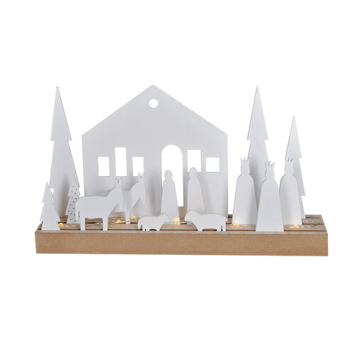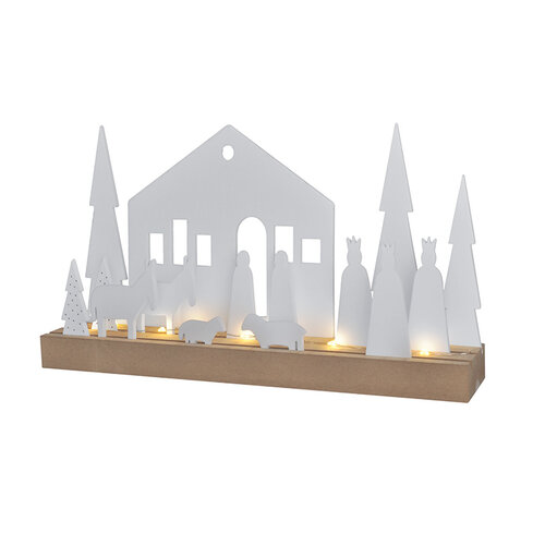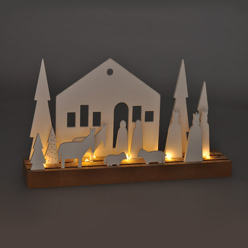 Zimná dedinka s osvetlením je krásnou vianočnou dekoráciou, ktorá vyniká jednoduchým a nadčasovým diszajnom. Jednotlivé prvky je možné ľubovoľne umiestniť na drevený podstavec aj okolo neho. Môžete si tak vytvoriť vlastnú originálnu dekoráciu podľa svojich predstáv.Na podstavci je umiestnený transparentný svetelný drôt s 10 LED diódami.Špecifikácia: