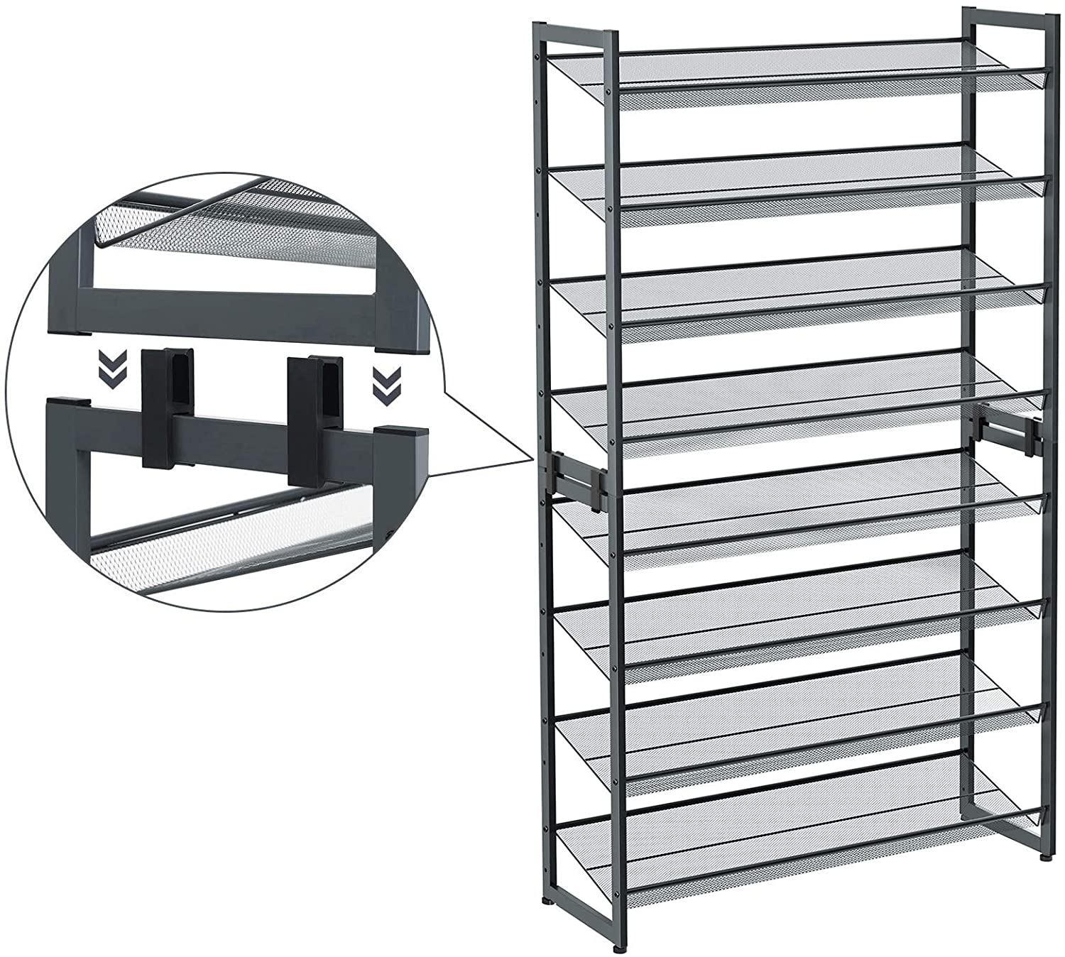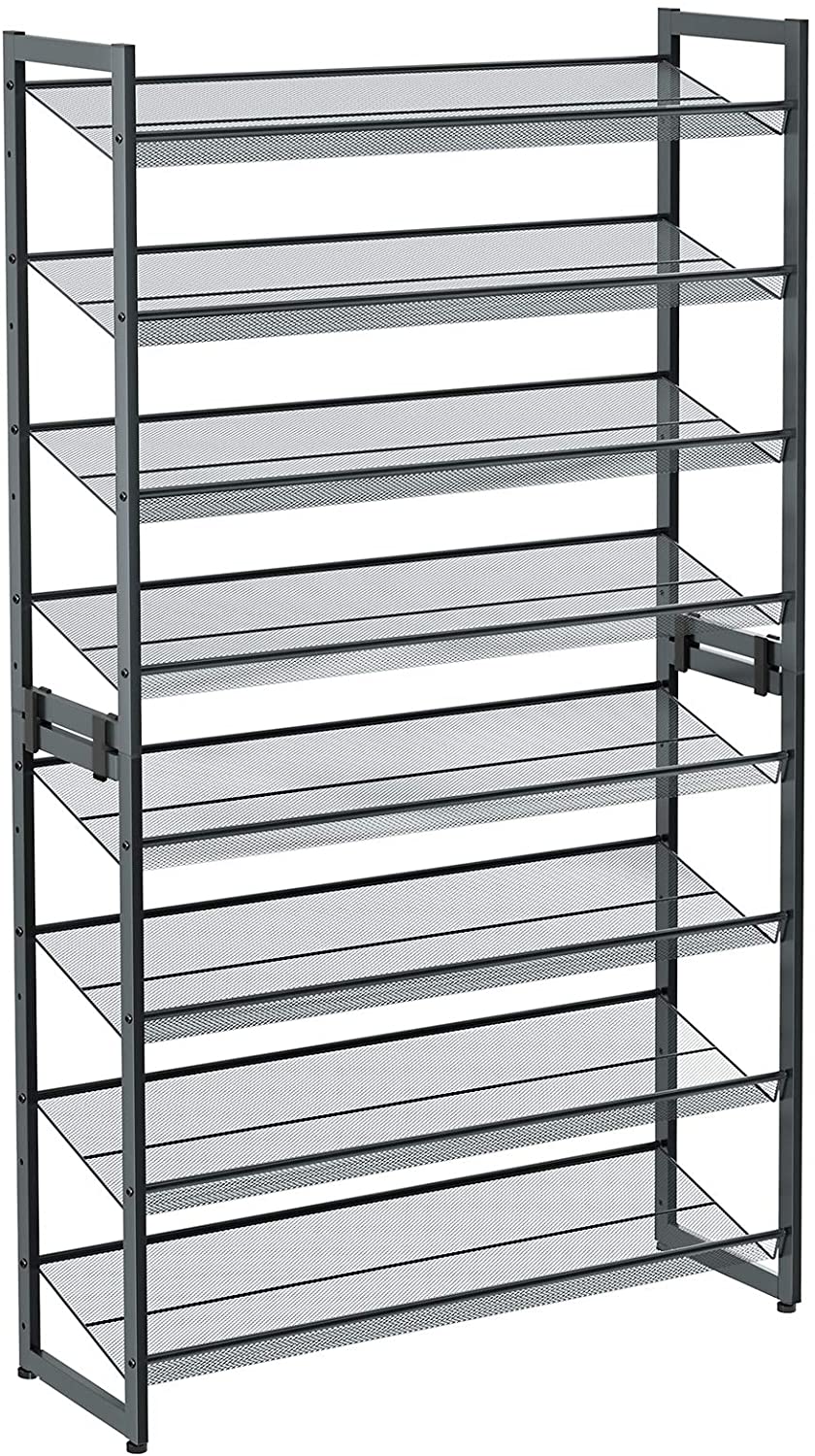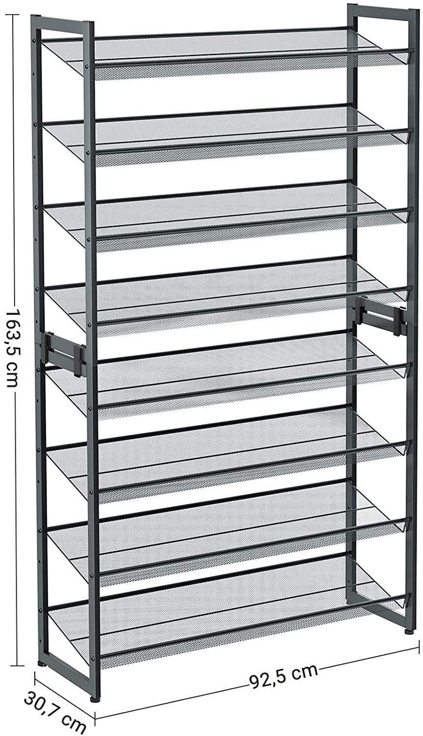 SONGMICS Skladací kovový regál na topánky 10 políc sivá