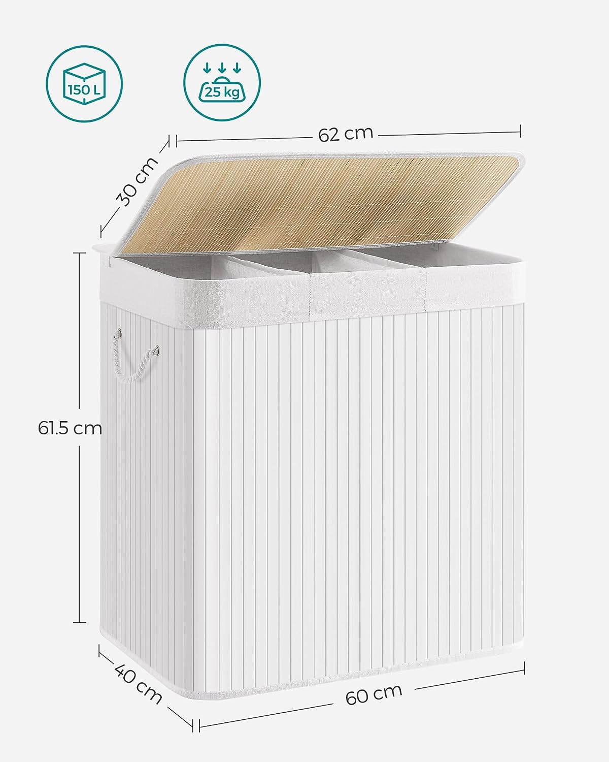 SONGMICS Dvojdielny kôš na bielizeň biely bambus 100 l