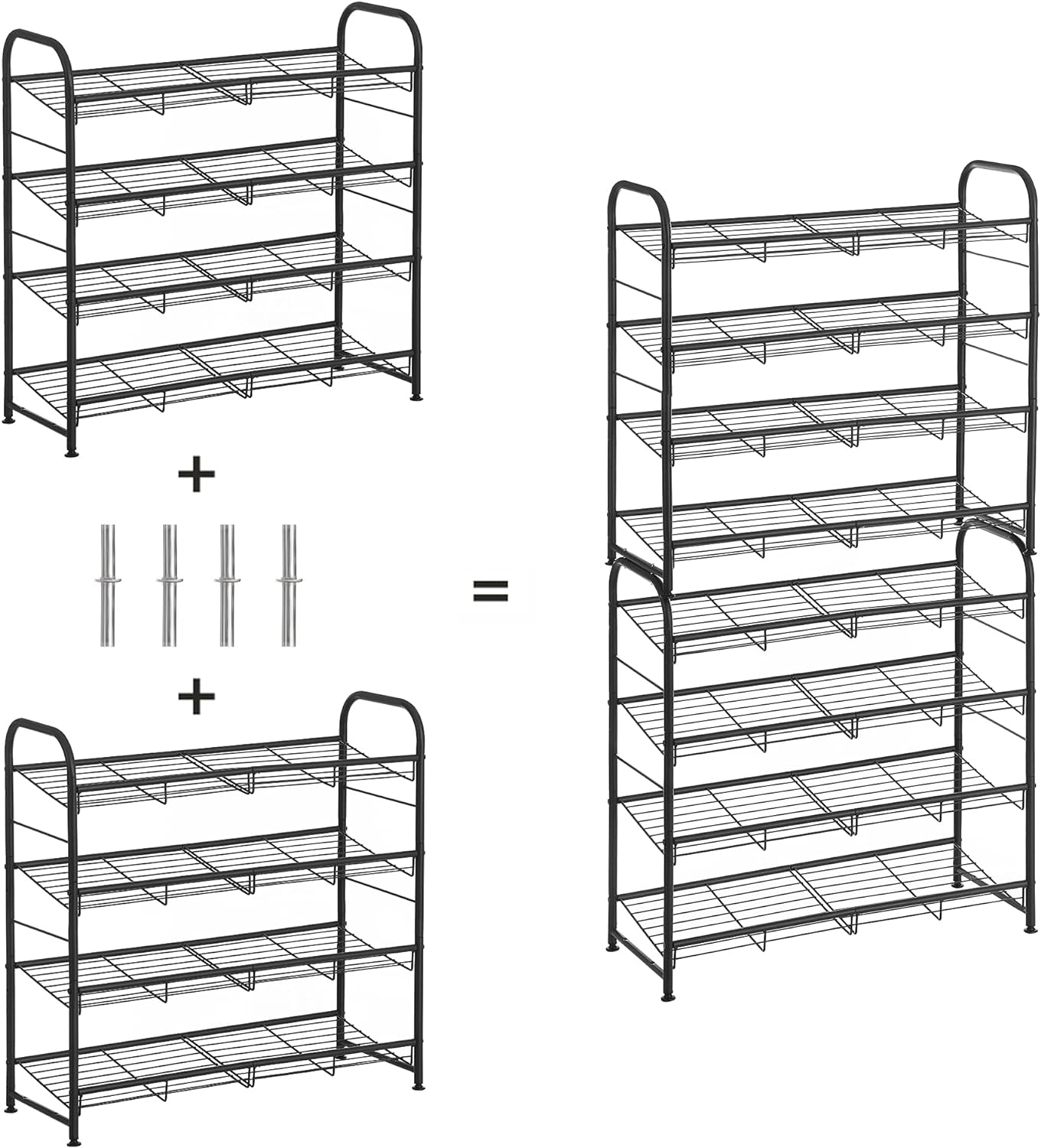 SONGMICS Kovový botník 8 drôtených políc čierny