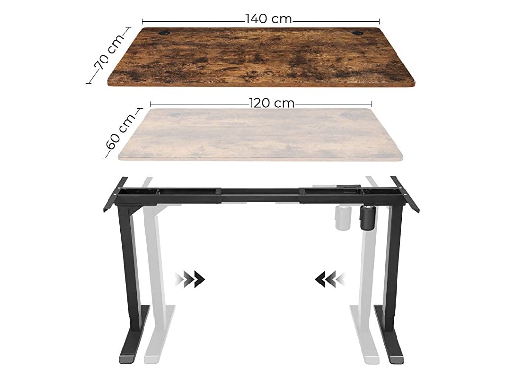 Šírku oceľového rámu možno nastaviť v rozmedzí 115 až 147 cm a unesie až 100 kg. Je ideálny pre stolové dosky SONGMICS s rozmermi 120 x 60 cm alebo 140 x 70 cm