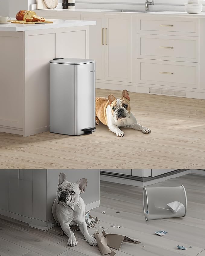 SONGMICS Odpadkový kôš s vekom LTB03NL 30 L, strieborný