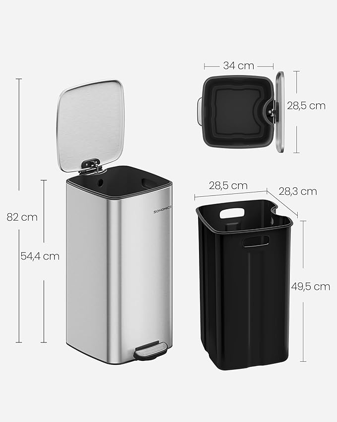 Špecifikácia pre produkt: SONGMICS Odpadkový kôš 30 l nerezová oceľ