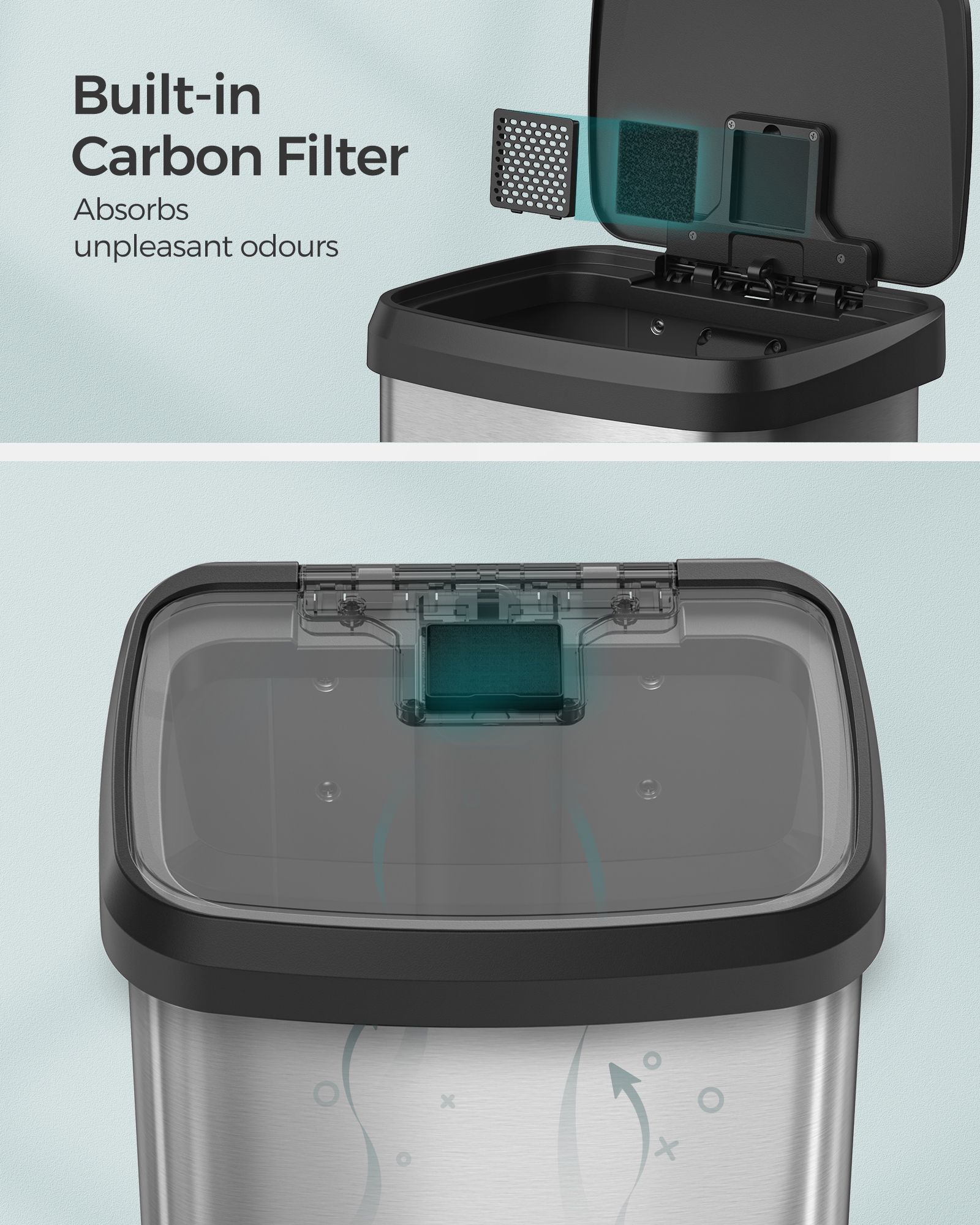 Uhlíkový filter vo veku pohlcuje nepríjemné pachy, takže vaša kuchyňa bude vždy voňať sviežo.