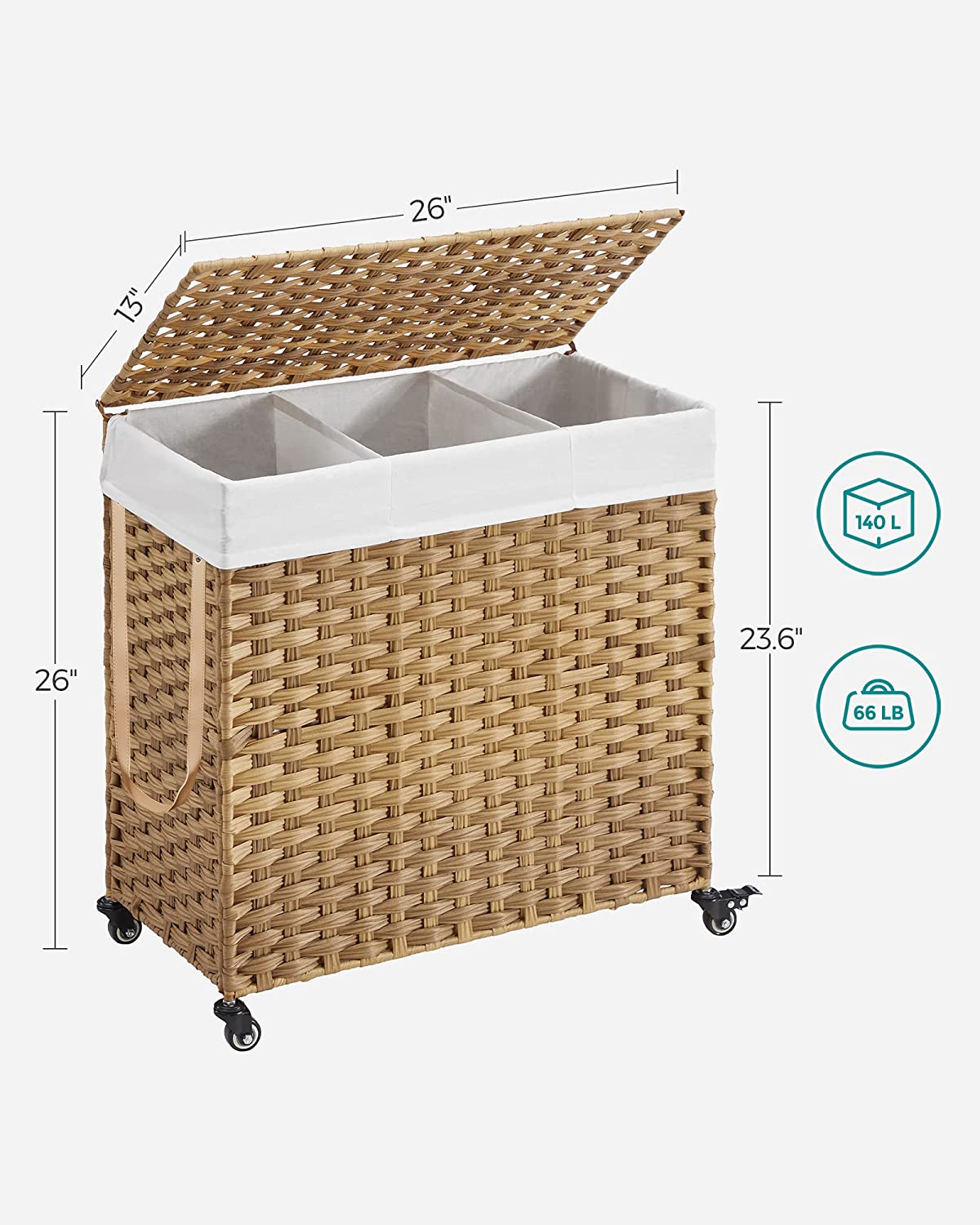 SONGMICS Pletený kôš na bielizeň s pojazdom a vyberateľnou vložkou