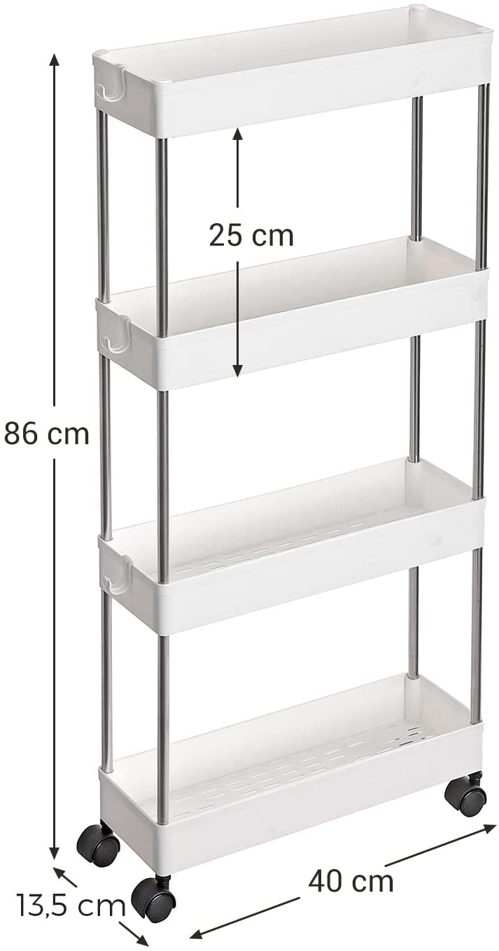 SONGMICS Pojazdný vozík 4 police biely 13,5 x 86 x 40 cm