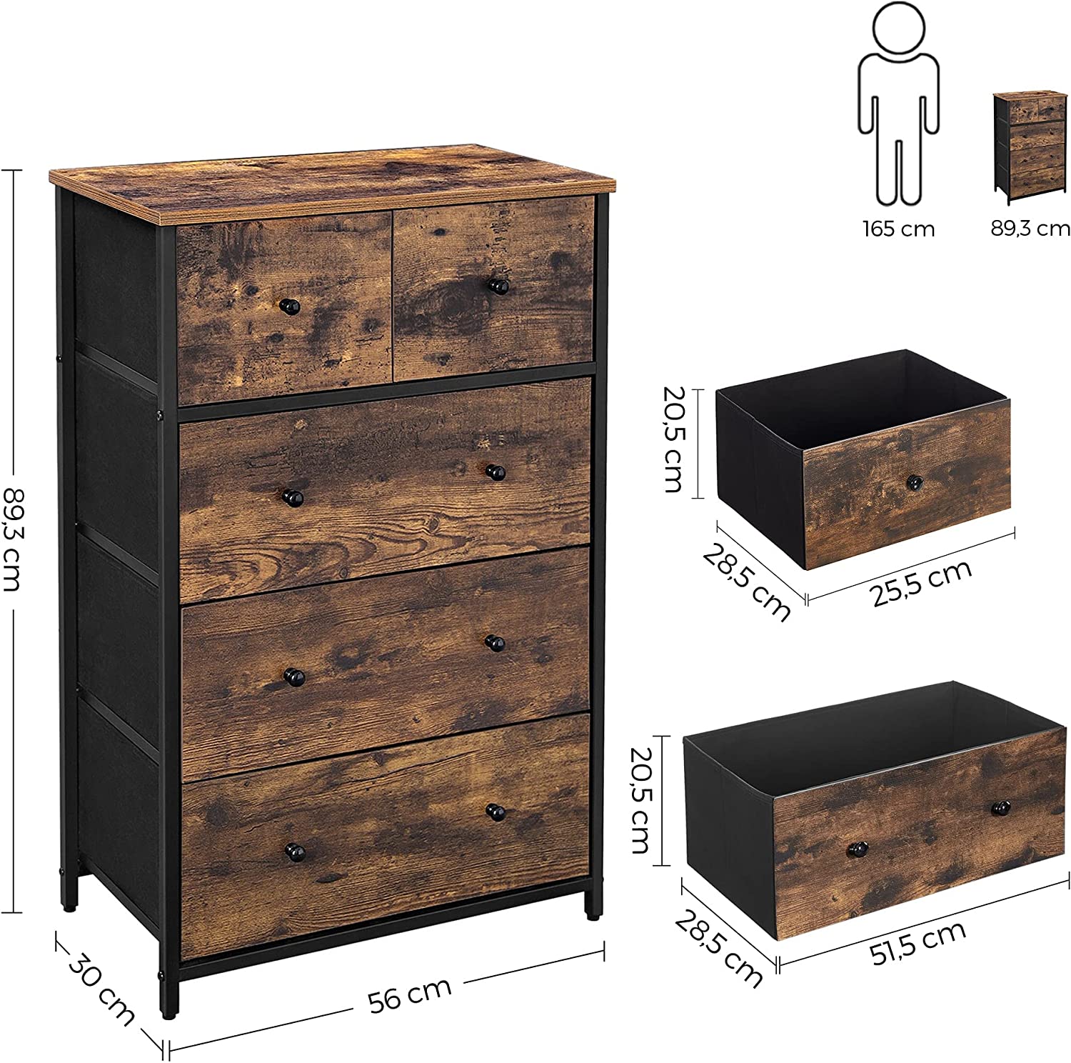 VASAGLE Komoda so 7 zásuvkami priemyselná hnedá
