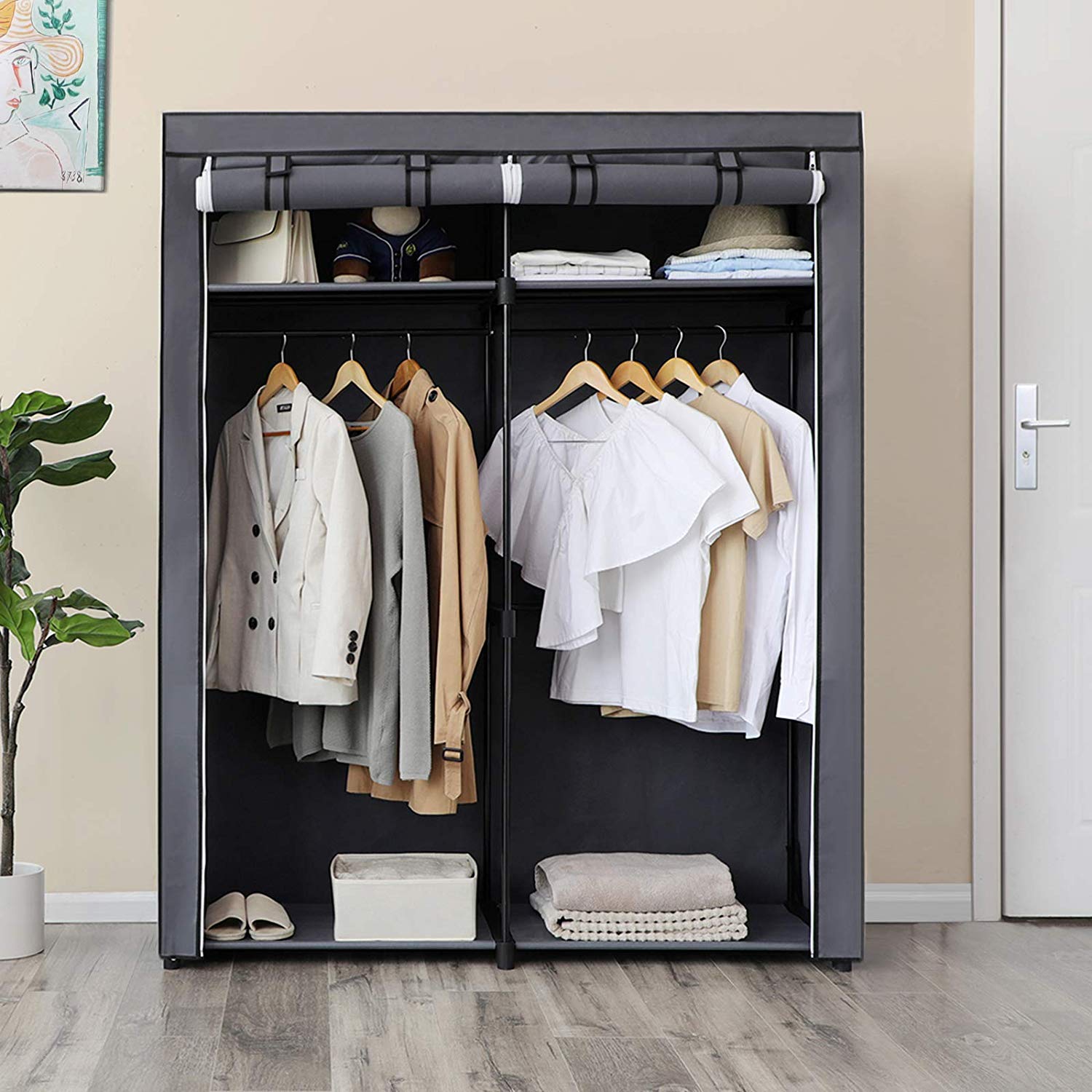 SONGMICS Šatník, látková, sivá, 140×174 cm