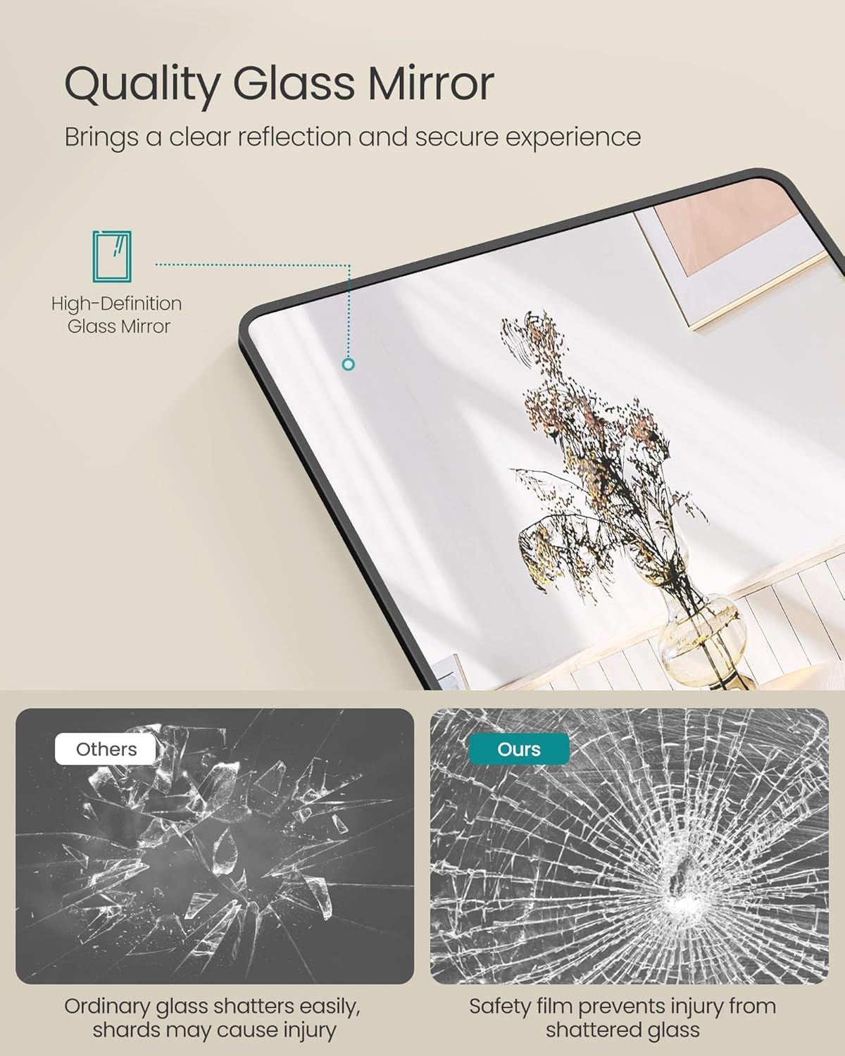 Zrkadlo je vyrobené z vysoko odolného tvrdeného skla s bezpečnostnou fóliou, ktorá minimalizuje riziko rozbitia a zaručuje vašu bezpečnosť aj v zriedkavom prípade rozbitia.