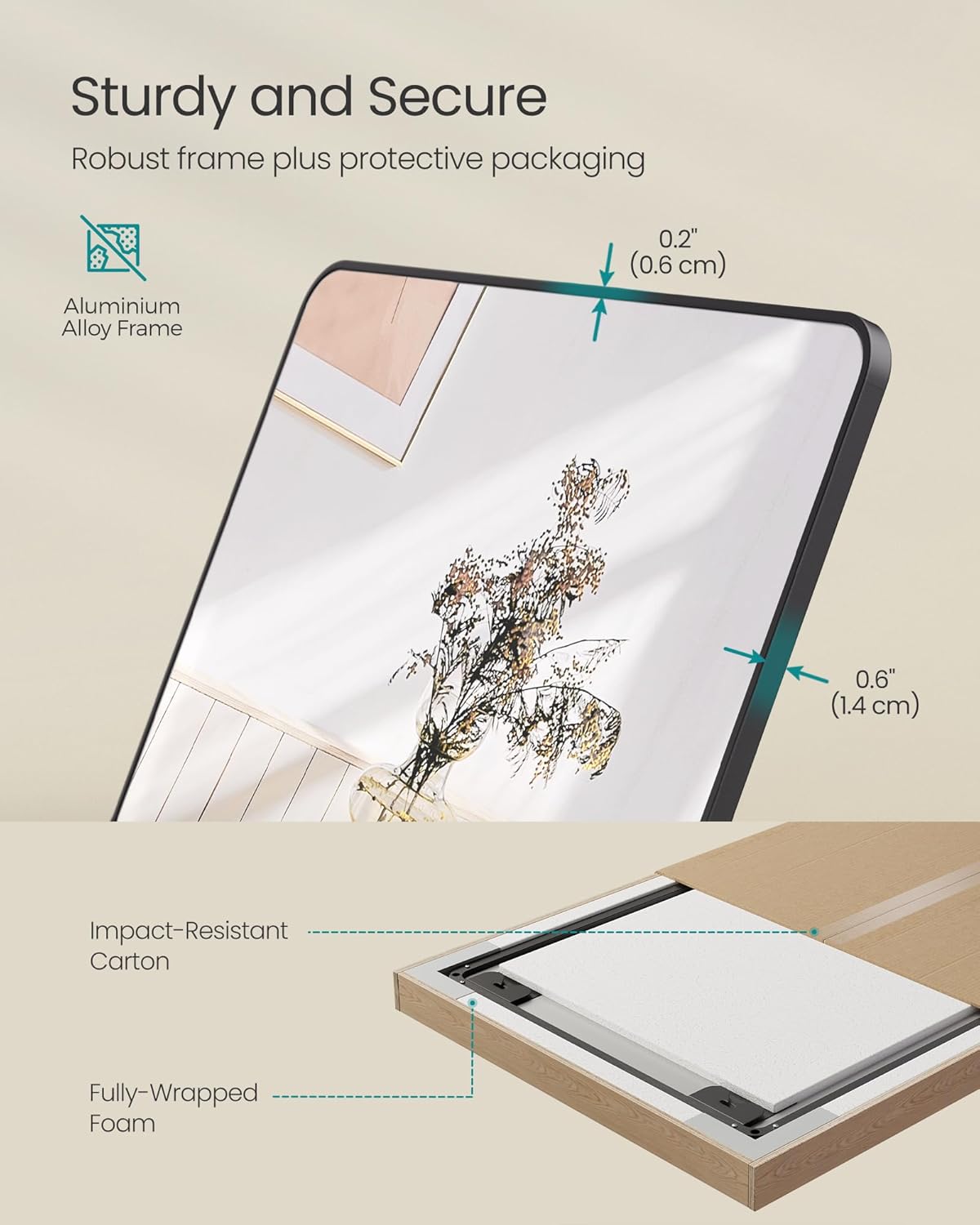 Toto zrkadlo v plnej dĺžke je pripravené na použitie ihneď po vybalení a nevyžaduje žiadnu montáž. Vďaka svojmu ľahkému rámu sa dá ľahko premiestňovať a umiestniť kdekoľvek vo vašej domácnosti.