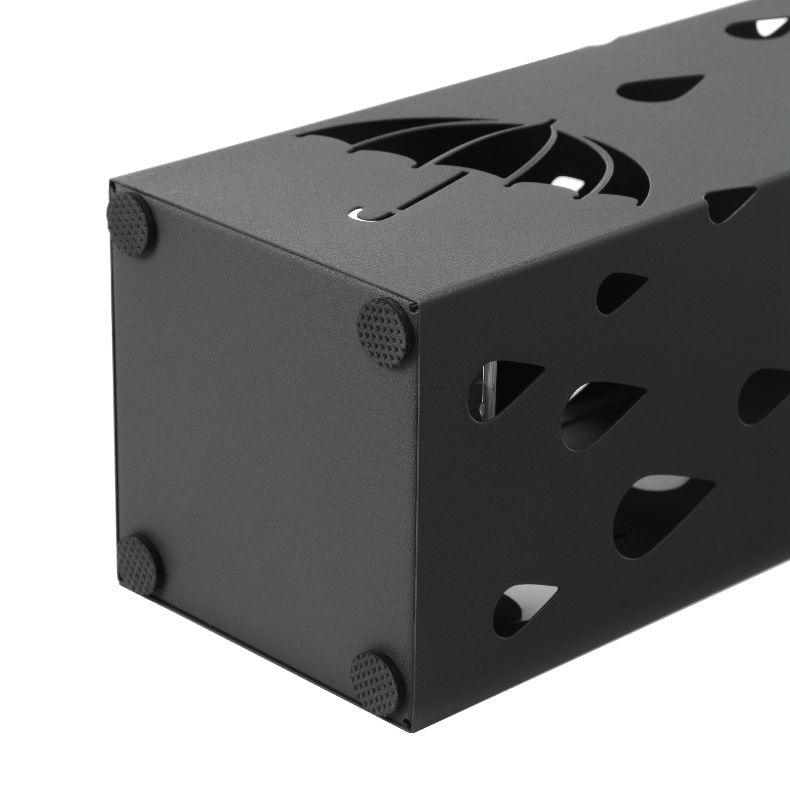 Jeho súčasťou je plastová odkvapkávacia miska, ktorá zabraňuje vytekaniu vody, a dva háčiky na zavesenie zložených dáždnikov.