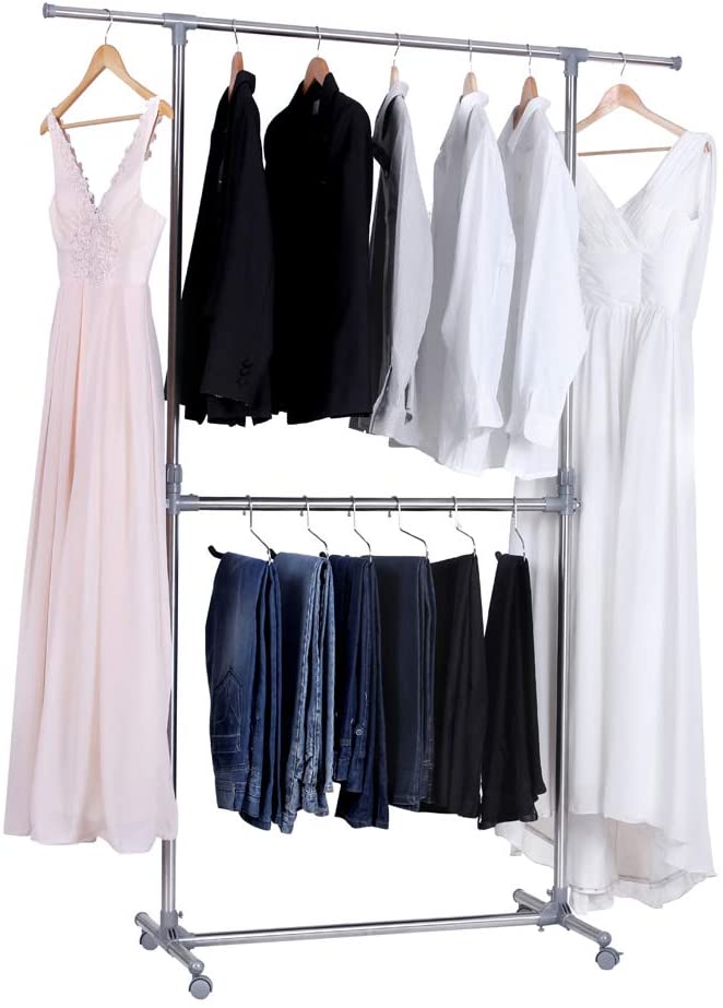 SONGMICS Stojan na odevy strieborný pojazdný 2 konzole 165 cm
