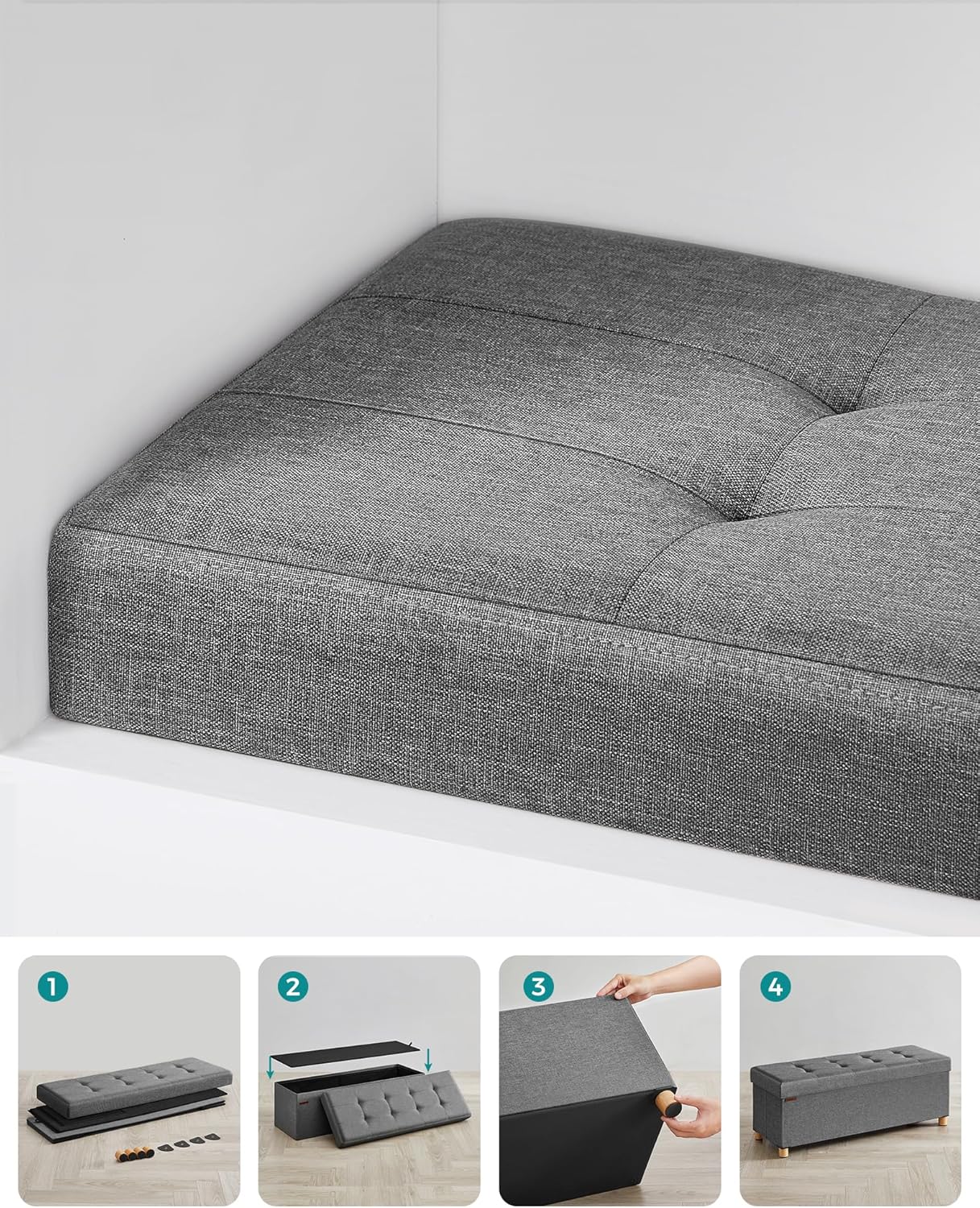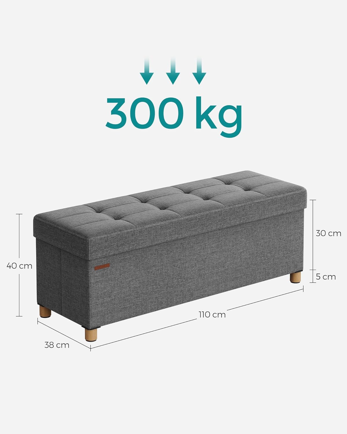 SONGMICS Stolička s úložným priestorom, 110 x 40 x 38 cm, sivá