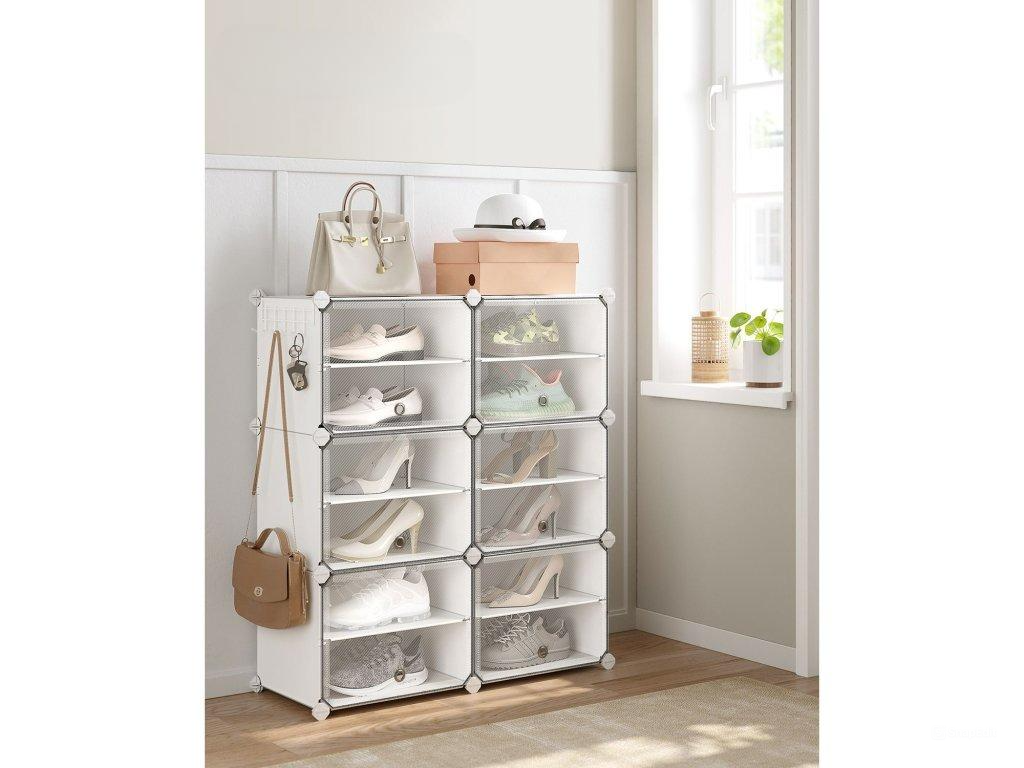 SONGMICS Variabilný plastový botník so 6 uzatvárateľnými boxmi biely