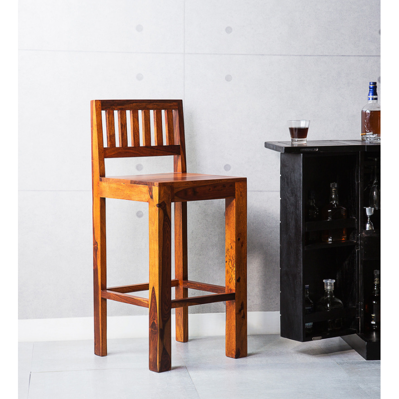 Barová stolička z masívu s výškou sedáku 75 cm, je vhodná do domácnosti, reštaurácií, kaviarní. Je vyrobená z indického palisandru. Barové stoličky z masívu, ktoré máme skladom, si môžete pozrieť v našom showroome. Indický koloniálny nábytok palisander (sheesham) masív.