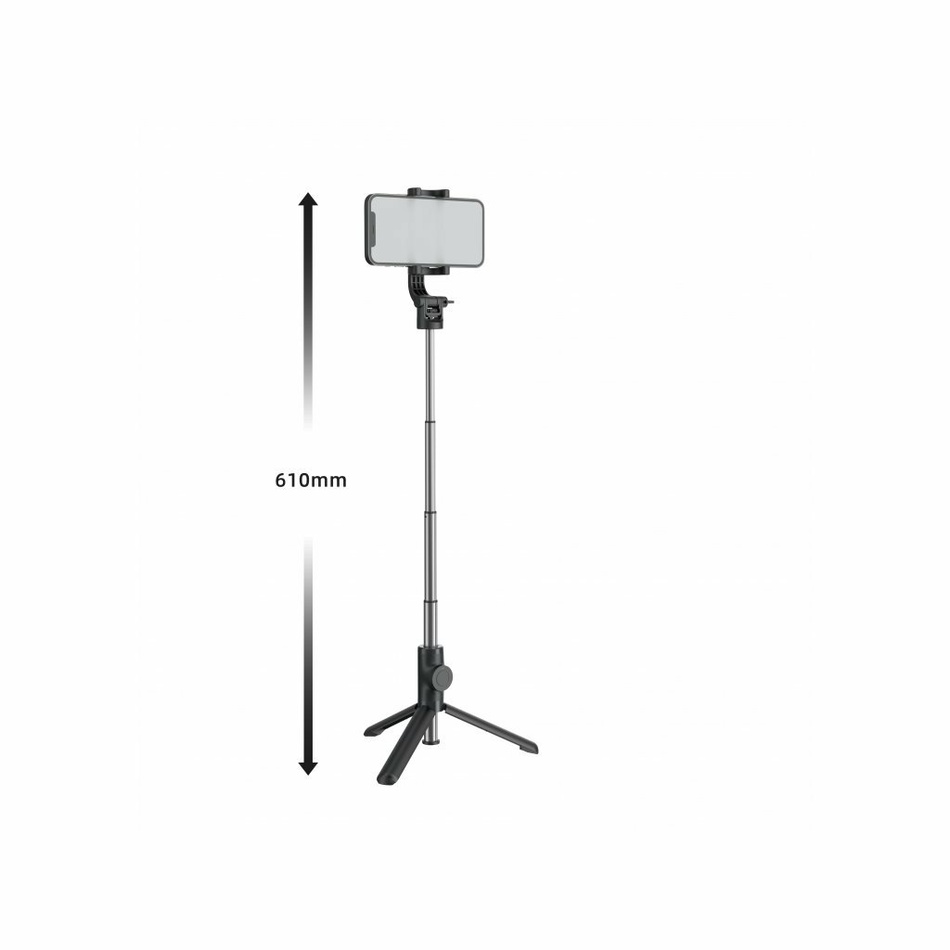Teleskopická selfie tyč s diaľkovým bluetooth ovládaním s 1/4 závitom na pripevnenie kamery GoPro alebo inej digitálnej či športovej kamery. Súčasťou selfie tyče je držiak na telefón s možnosťou rotácie v rozmedzí 360°. Výsuvná tyč je vyrobená z odolnej zliatiny hliníka. Dĺžku selfie tyče je možné nastaviť v rozmedzí 21,5 cm až 63,5 cm. Vďaka tripodu (trojnožke) môžete tyč využiť núdzovo aj ako statív a odfotiť ďalšie krásne fotografie za sťažených vizuálnych podmienok.Kompatibilná s OS Android od verzie 4.3, ale aj iOS od verzie 5.0.Diaľkové ovládanie vyžaduje batériu CR1632 s kapacitou 125 mAh.