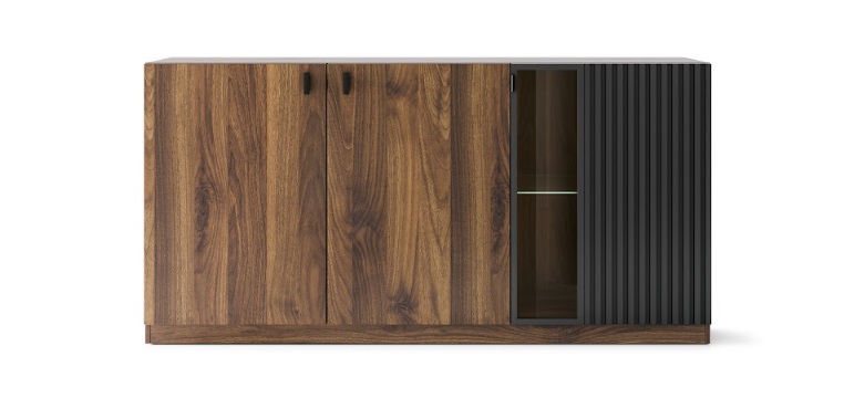 BIM Komoda Woody 4D, 180 cm, čierny mat/pacifický orech