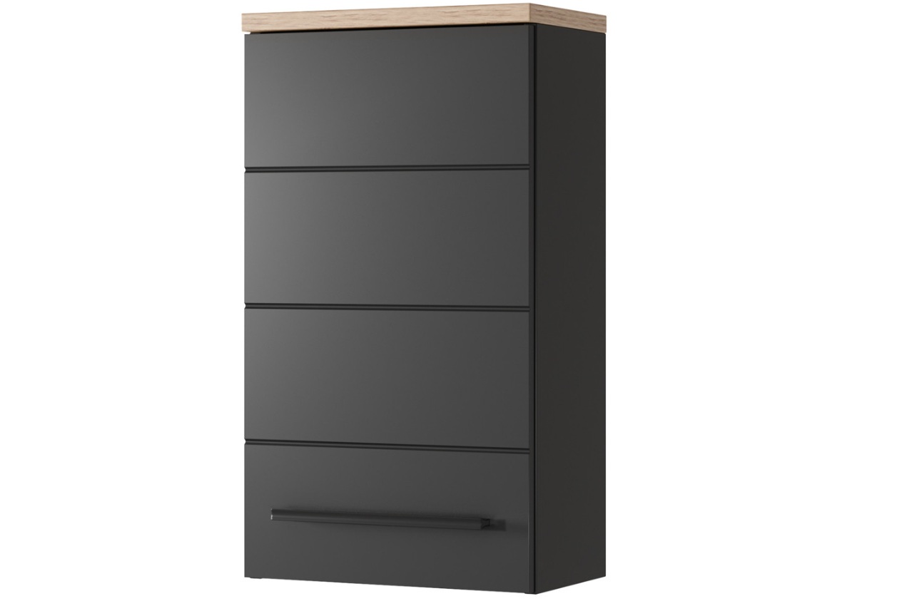 Závesná skrinka do kúpeľne SWING 71 má matný čierny povrch v harmónii s prirodzeným dubom artisan, ktorý prináša elegantný a moderný dizajn. Kúpeľňový nábytok SWING je skvelou voľbou pre tých, ktorí uprednostňujú dekory s decentným vzhľadom. Ak si chcete vytvoriť harmonický interiér, kombinujte zostavu so svetlými dlažbami alebo kameňom. Skrinka SWING je jednodverová s poličkou.