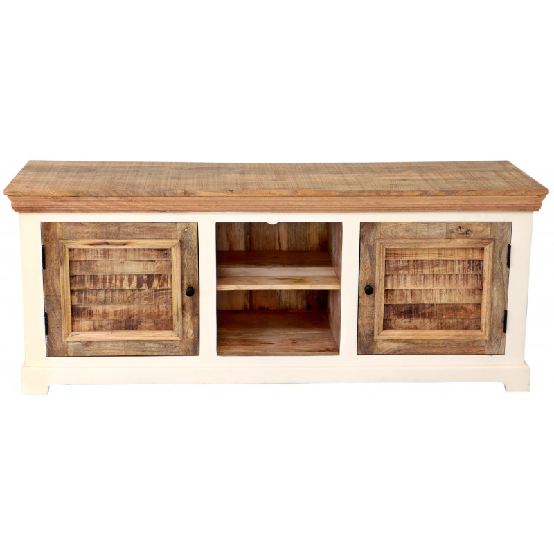 TV stolík z masívu Agni je vyrobený z kvalitného masivného mangového dreva vo vidieckom štýle.Oživte svoj obývací priestor s naším exkluzívnym TV stolíkom z masívu indického manga. S dvoma elegantnými postrannými skrinkami, vybavenými praktickými policami, tento TV stolík nielenže poskytuje dostatok úložného priestoru pre vaše veci, ale taktiež prináša do vášho domova nezameniteľný nádych masívneho nábytku v štýle Provence. Drasaný povrch dreva tohto televízneho stolíka dodáva nábytku netradičný a hravý vzhľad. TV stolíky z masívu, ktoré máme skladom, si môžete pozrieť v našom showroome. Indický koloniálny nábytok mango masív.