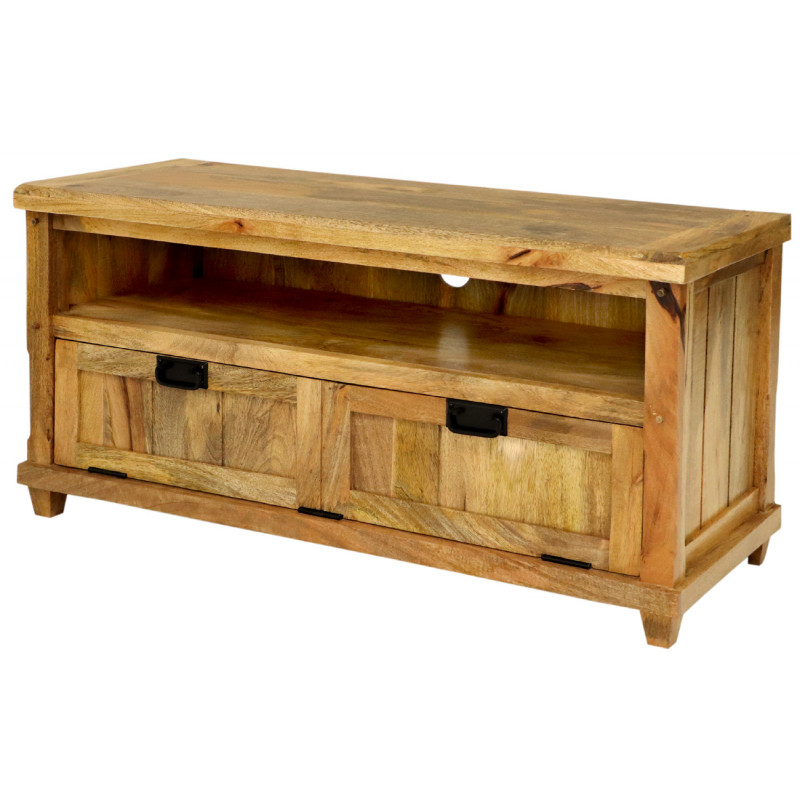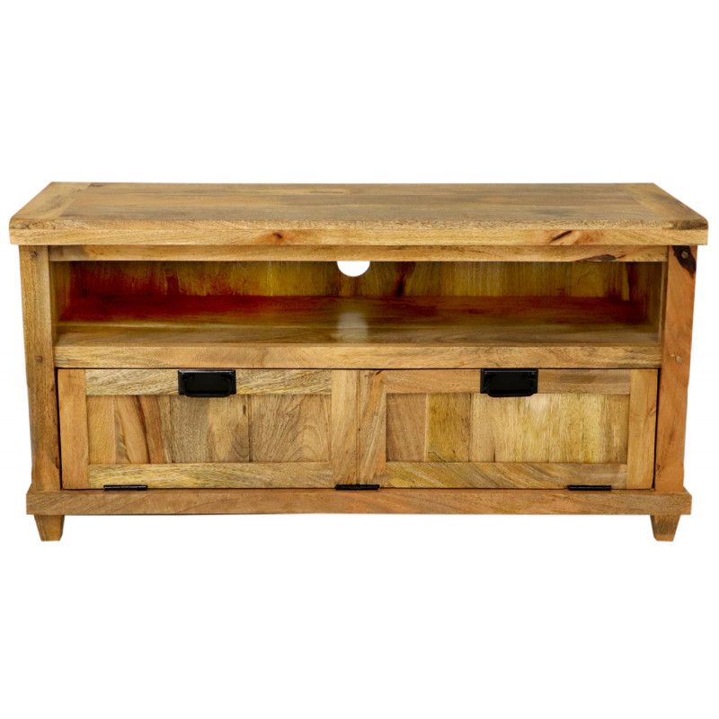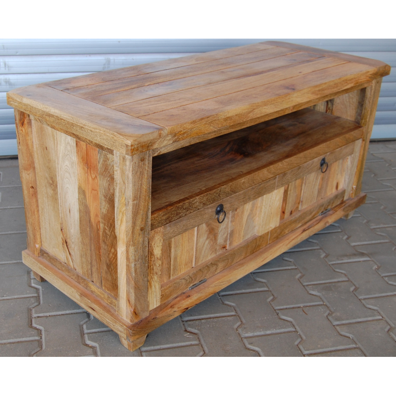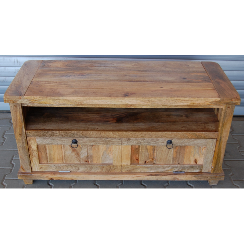 TV stolík z masívu Devi je vyrobený z kvalitného masívneho mangového dreva.TV stolík s dvoma dvierkami a horným odkladacím priestorom je vyrobený z masívu mango. TV stolíky z masívu, ktoré máme skladom, si môžete pozrieť v našom showroome. Indický koloniálny nábytok mango masív.