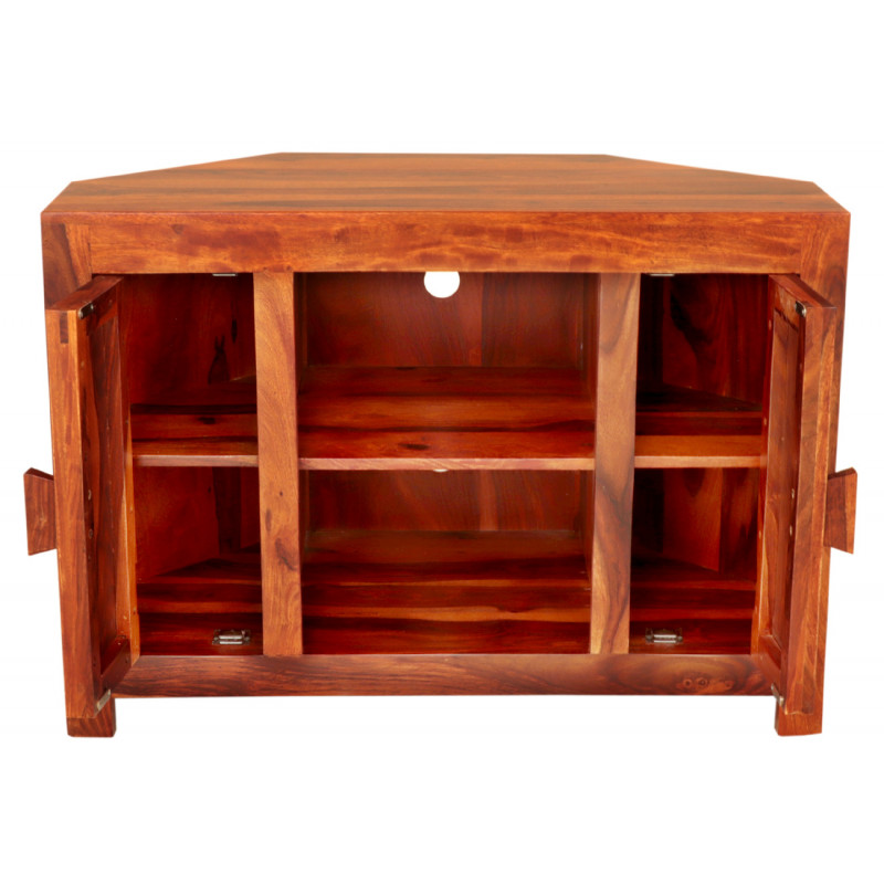 TV stolík rohový masív Kali je vyrobený z kvalitného masívneho palisandrového dreva. Rohový TV stolík z masívu je vyrobený z indického palisandru. Má dvoje dvierka a dve poličky.TV stolík nemá 90°.Rohové TV stolíky z masívu, ktoré máme skladom, si môžete pozrieť v našom showroome. Indický koloniálny nábytok palisander (sheesham) masív.
