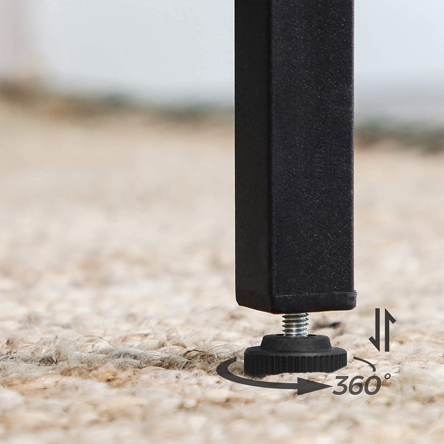 Oceľové nohy s rozmermi 25 x 25 mm, ďalej vystužené nosníkmi s rozmermi 20 x 40 mm, podoprú všetky vaše jedlá a nápoje. Nastaviteľné nohy dodávajú vysokému stolu stabilitu a zabezpečujú, že pomarančový džús neskĺzne na podlahu.