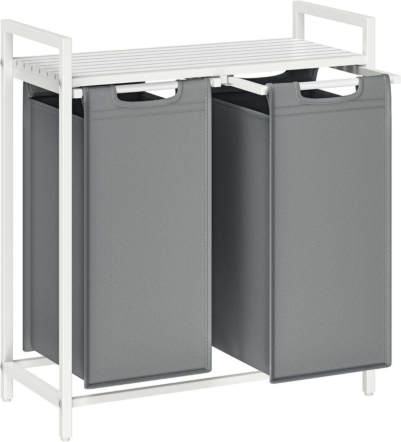 Ponúkame vám bielo-sivý dvojkomorový kôš na bielizeň s dvoma vyberateľnými samostatnými jednotkami na jednoduché triedenie a organizáciu bielizne.