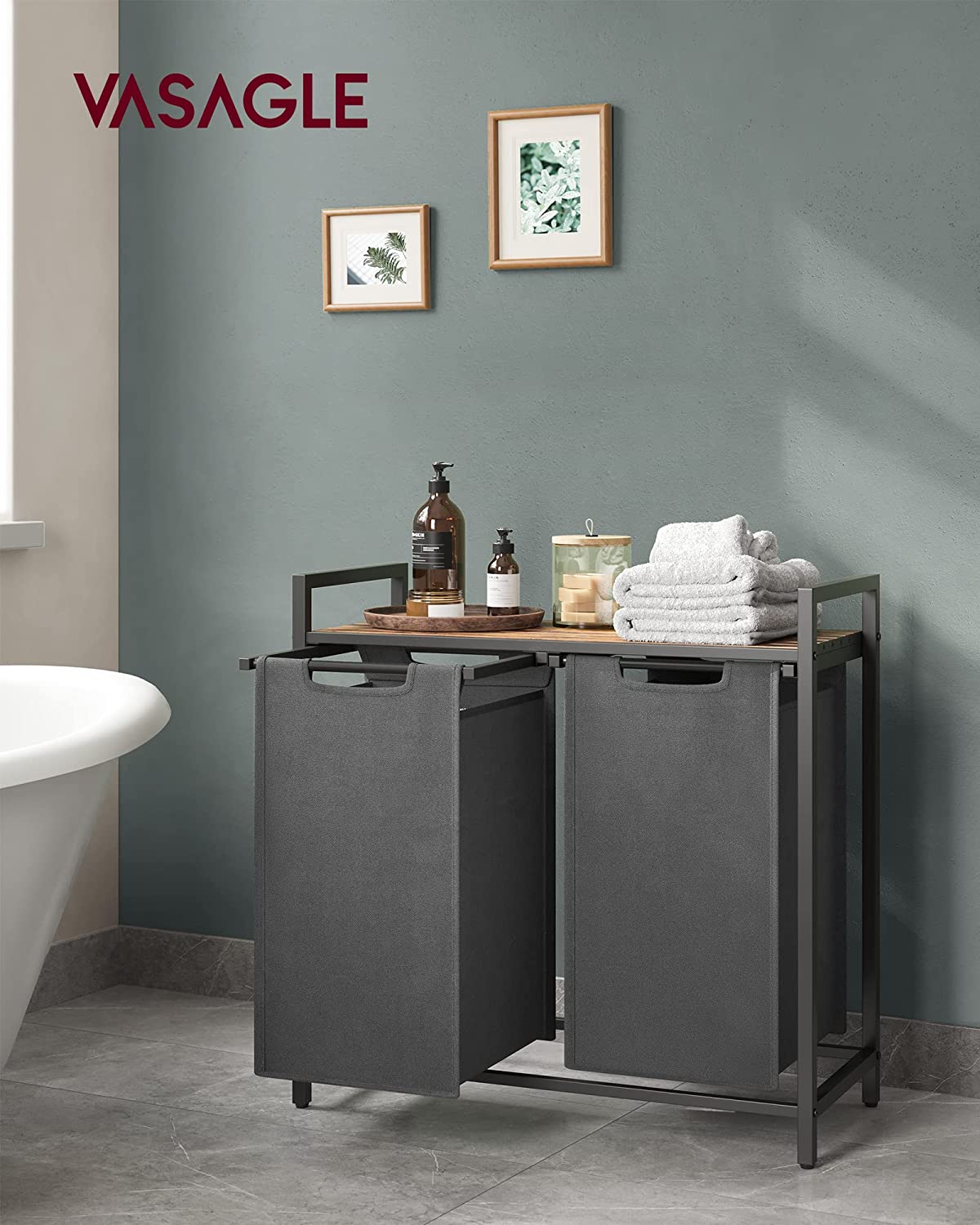 VASAGLE Kôš na bielizeň s kovovým rámom a dvoma priehradkami