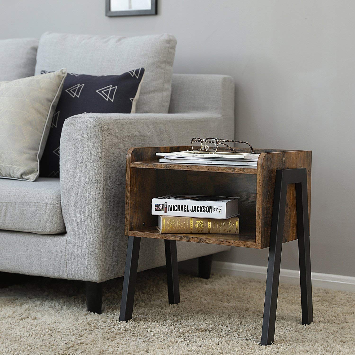 VASAGLE Kovový nočný stolík hnedý 42×52 cm
