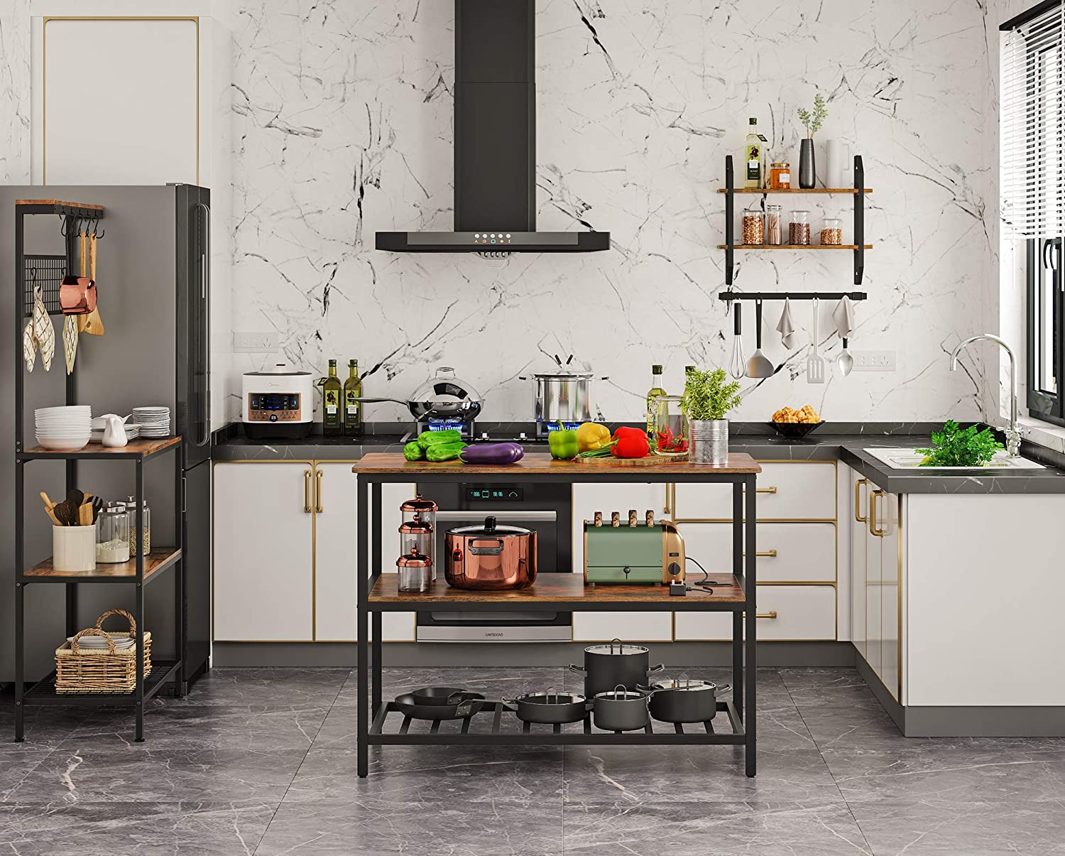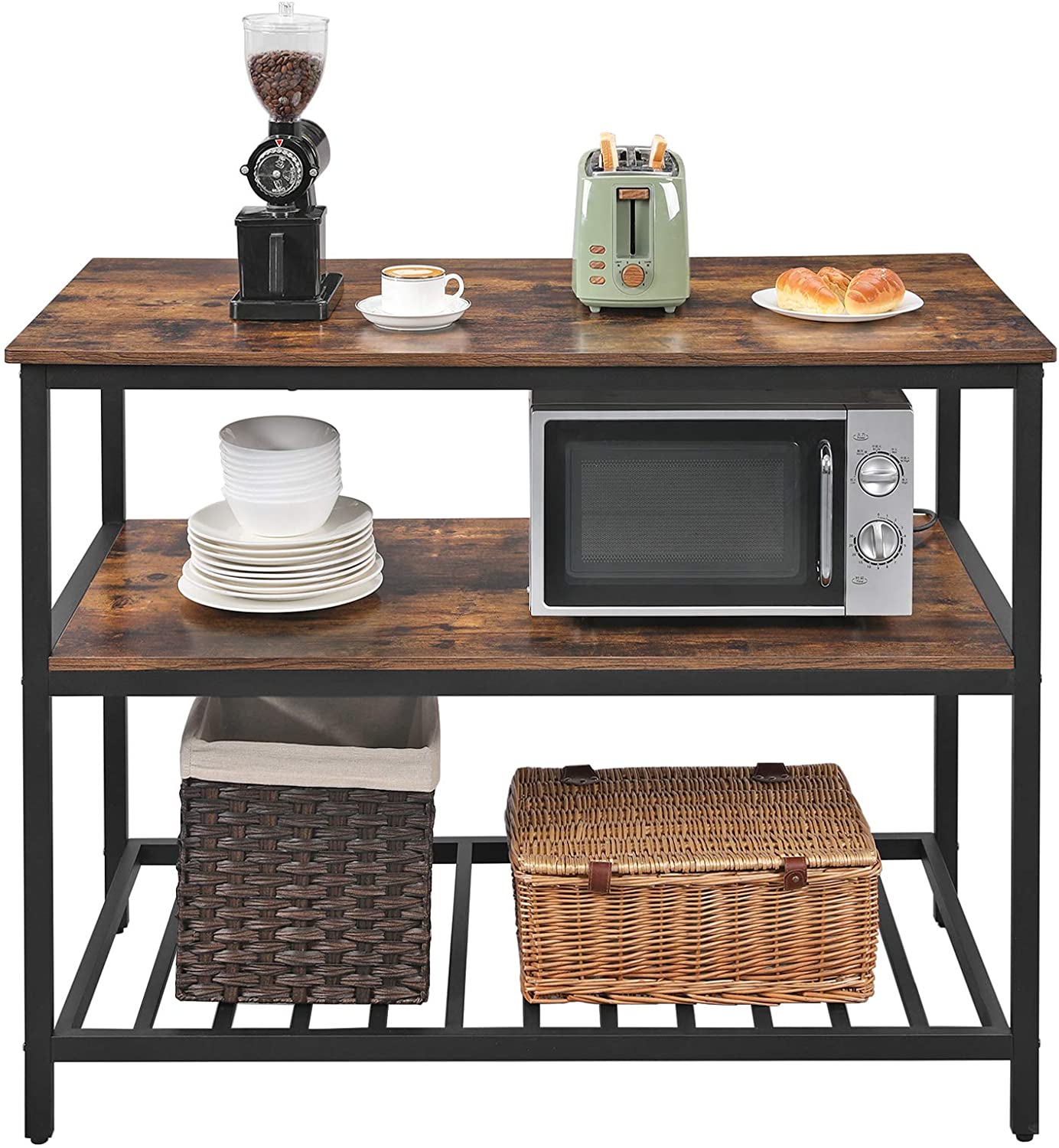 VASAGLE Kuchynský pracovný stôl s dvoma policami 120 x 90 x 60 cm